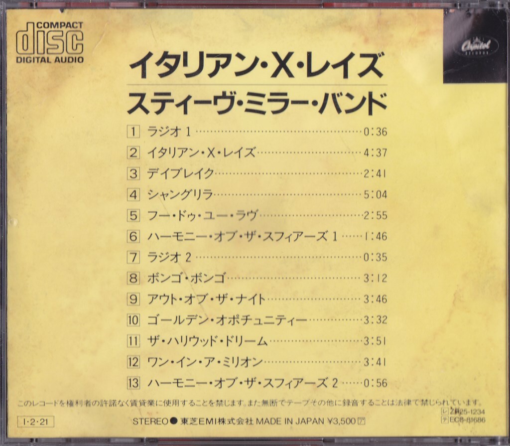 | スティーヴ・ミラー・バンド / Steve Miller Band / イタリアン・X・レイズ /中古CD!!74090 | |