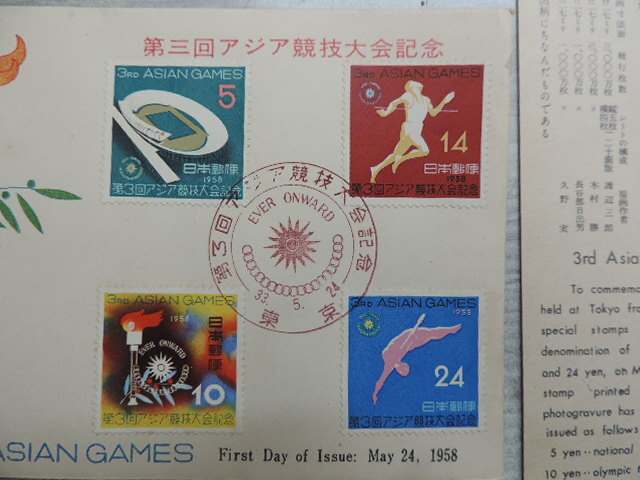 ★第三回アジア競技大会記念★ 初日カバー 昭和33年5月24日・東京 24円・14円・10円・5円×1枚 郵便文化部発行| 出价者 | 信用 | 价格 | 时间 |