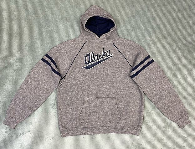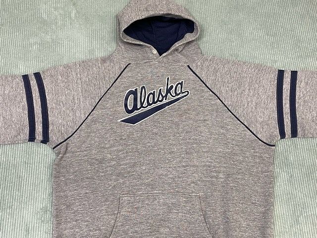 | 説明 | 70-80's スポーツウェアボディのスウェットフーディ alaskaラバープリント プリント、アームライン、シームのトリム、フード裏にネイビーを用いグレーボディにマッチしたとてもいい配色です。 アメリカ製 |