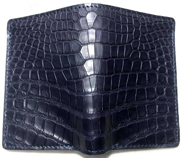 色は綺麗な「ネイビー(クロコダイル)×ブラック(ベース)」、使い込むごとにエキゾチックレザー独特の上品な艶が現れ、とても雰囲気が良くなります!