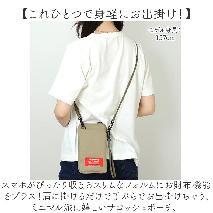 | 商品説明 | ・・収納したままスマホが操作ができるクリアポケット付き!アーリーアメリカンテイストで人気の「MERCURY -マーキュリー-」から「モバイルサコッシュ」が新登場。 ・【これひとつで身軽にお出掛け!】 ・スマホがぴったり収まるスリムなフォルムにお財布機能をプラス!肩に掛けるだけで手ぶらでお出掛けちゃう、ミニマル派に嬉しいサコッシュポーチ。 ・【まるで長財布並みの収納力】 ・ダブルファスナー式のメインルームは、紙幣やコイン用のファスナーポケット×1に、カードポケット×4を搭載したお財布スペース。お財布を別に持たなくていいから楽ちん! ・【収納したままタッチ操作OK!】 ・ポーチ正面にはスマホ専用のPVCクリアポケット付き!ポーチ内に収納したままクリアシートごしにタッチ&スワイプ操作が可能♪ ・【マルチに使えるオープンポケット】 ・ポーチの背面のオープンポケットは、パスケースやステーショナリーなど、小物の収納にマルチに使えて便利! ・【ショルダー&セカンドポーチの2WAY】 ・付属のショルダーベルトで肩掛けにすれば両手がフリーに。ショルダーベルトを外してストラップを手首に通せば、手持ちのセカンドポーチに変身! ・【センス抜群のジェンダーレスカラー】 ・マーキュリー製品ではお馴染み、シックなインダストリアルカラーがジェンダーレスなスタイルにフィット。アイコニックなレッドタグがパッと目を惹くワンポイント。 ・【ポケット仕様】 ・[メインルーム内側]ファスナーポケット×1、カードポケット×4 ・PVCクリアポケット×1 ・[ポーチ外側]オープンポケット×1 |