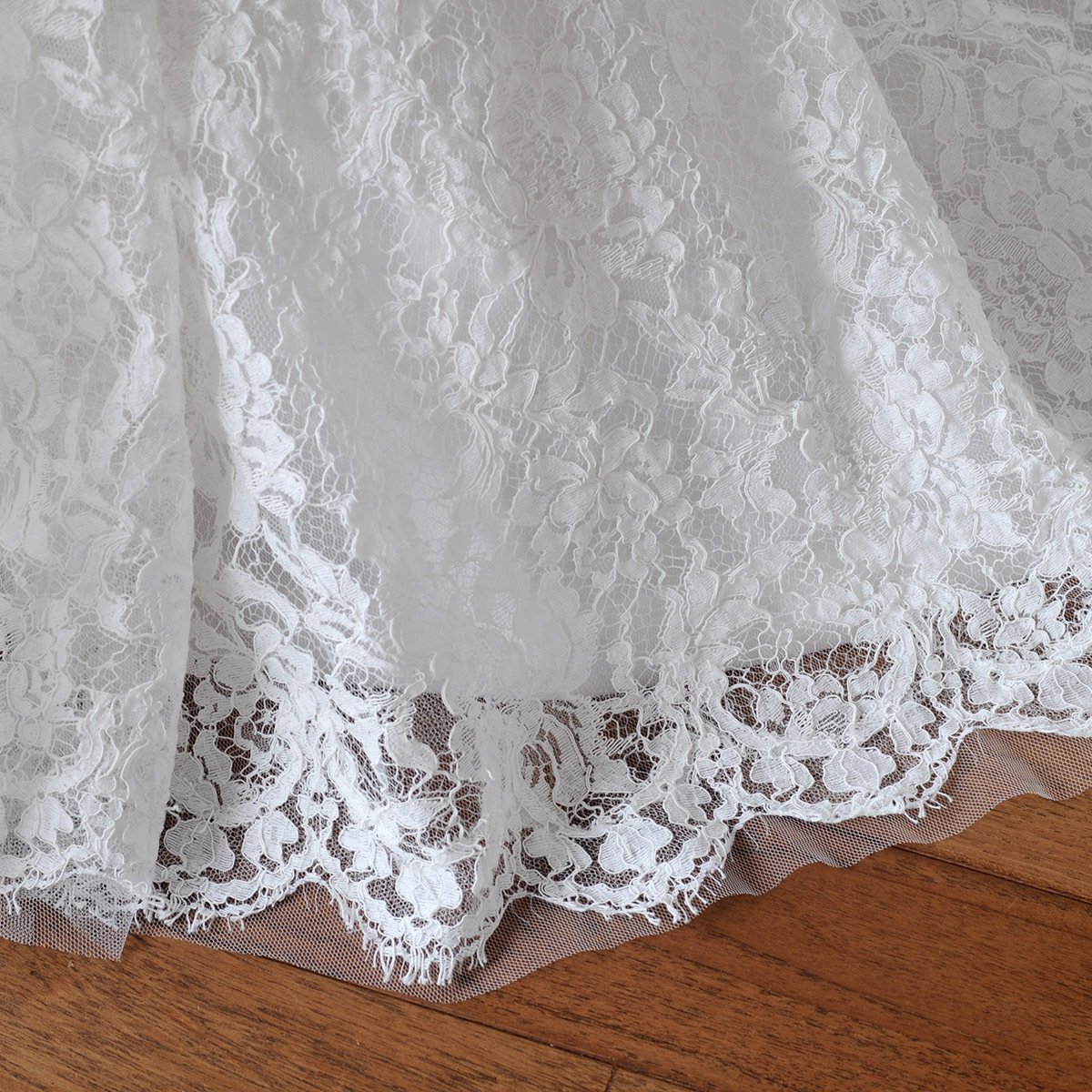 ご注文後にメンテナンスを行ったあと、発送させて頂きますので、ご注文日から発送まで1週間ほどお日にちを頂く点をご了承ください。 日本製でキレイで丁寧に縫製されています。 豪華な総レースのマーメイドラインドレスです。 女性らしい優美な印象を与えてくれる1着です. 膝から下のフレアが強くトレーンも長めです。 カラーはオフホワイトです。 レースは、フランス製リバーレースの大変高級素材です。 合わせる小物によっては、クラシカルにもラグジュアリーにも彩ってくれます。 【コンディション】 店頭サンプル品 【サイズ】 11号、身長160cm(7cmヒール) 【素材】 リバーレース