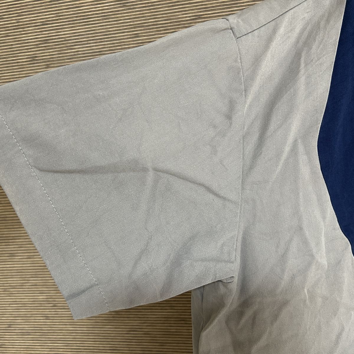 | 【ワークシャツ】半袖シャツ グレー 幾何学 四角ボタン ネイビー*4 | |