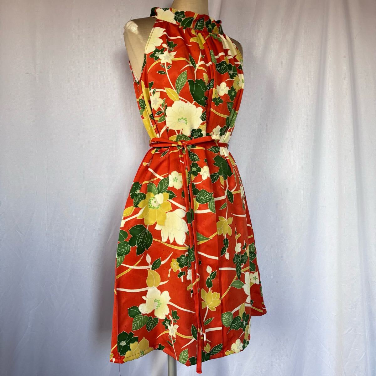 ★248★赤茶振袖ホルターネックワンピース★総柄花々★M★正絹| 出价者 | 信用 | 价格 | 时间 |