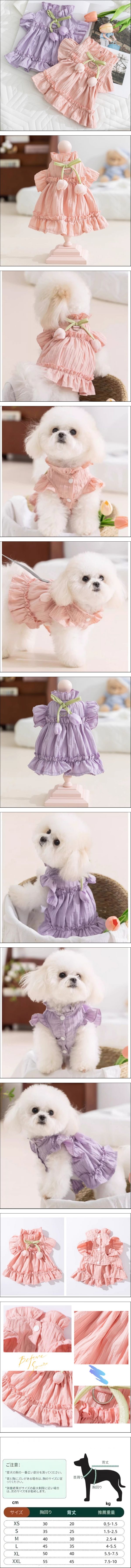 犬服 春夏 プリンセス風 ペットワンピース チューリップ蝶結び付き プリーツスカート フック付き 前開き ボタン式 小型犬 猫用ドッグウェア | |||