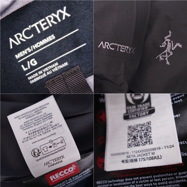 | 極美品 アークテリクス ARCTERYX 2024 マウンテンパーカー BETA JACKET M ベータ ナイロン GORE-TEX メンズ L ブラック |