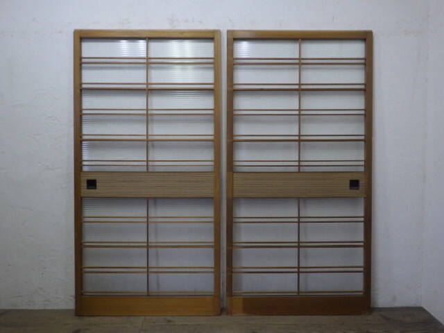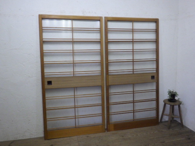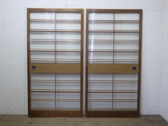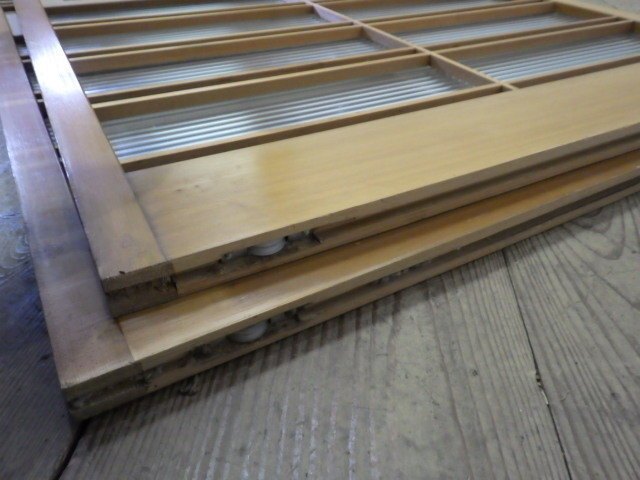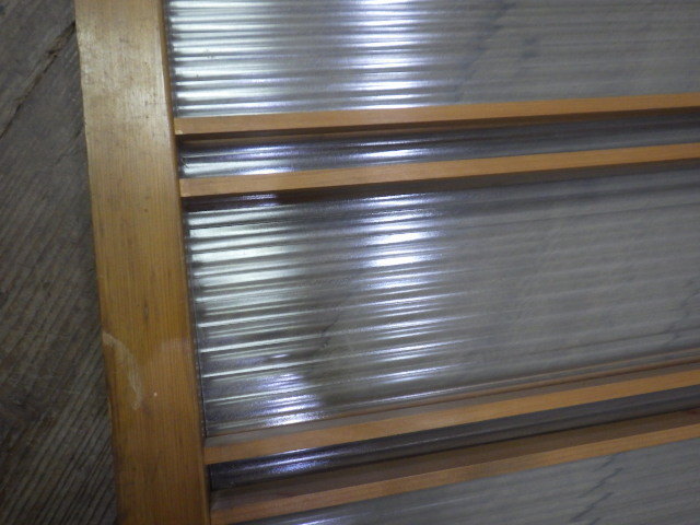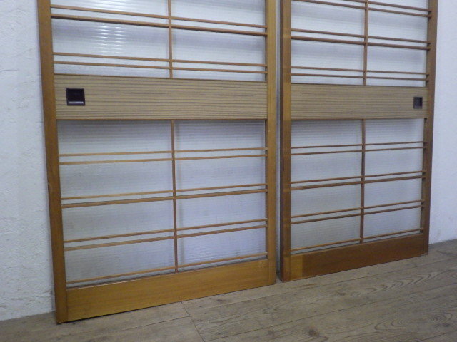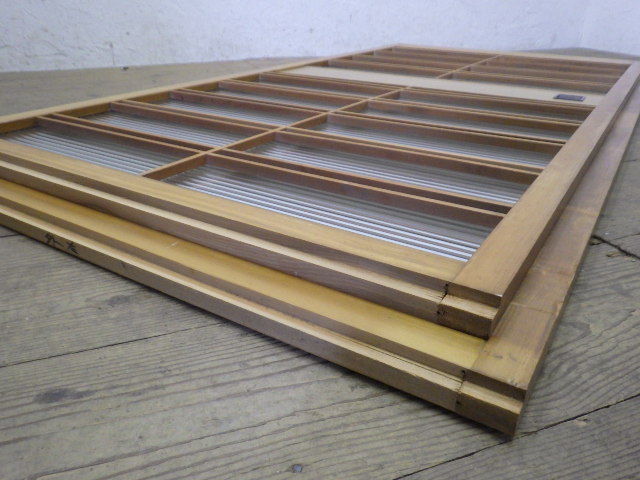 商品情報 | ■商品詳細■ ビンテージの古い木製ガラス戸、2枚セットです。 長年使い込まれた味わいのある品です。 ガラスは、モールガラスを使用しており、素敵なアクセントになっています。 一般のご家庭はもちろん、レトロな店舗什器にもお勧めです。 経年の傷や欠け、染み等がありますが、使用には問題ありません。 ガラスにヒビや割れはありません。 古い物とご理解いただければ幸いです。 ◆別カテゴリーにて同じデザインの品(T823~T825)を出品していますので まとめてご希望の場合は、ストア内検索で上記の管理番号を検索して頂ければと思います。 売買済みの場合はご了承下さい。 ご不明な点などありましたら、質問欄にてお願いします。 ■サイズ■ 全体(最大値) (H 176cm×W 90cm×D 3cm)×2枚 竪框 4cm 多少の誤差はご了承下さい。 |