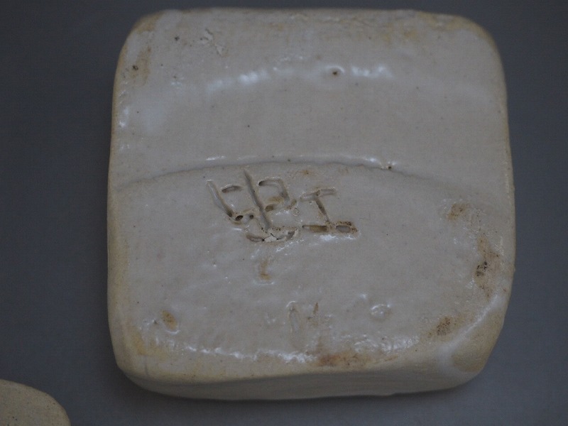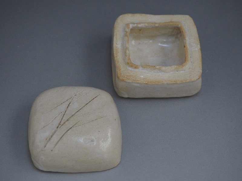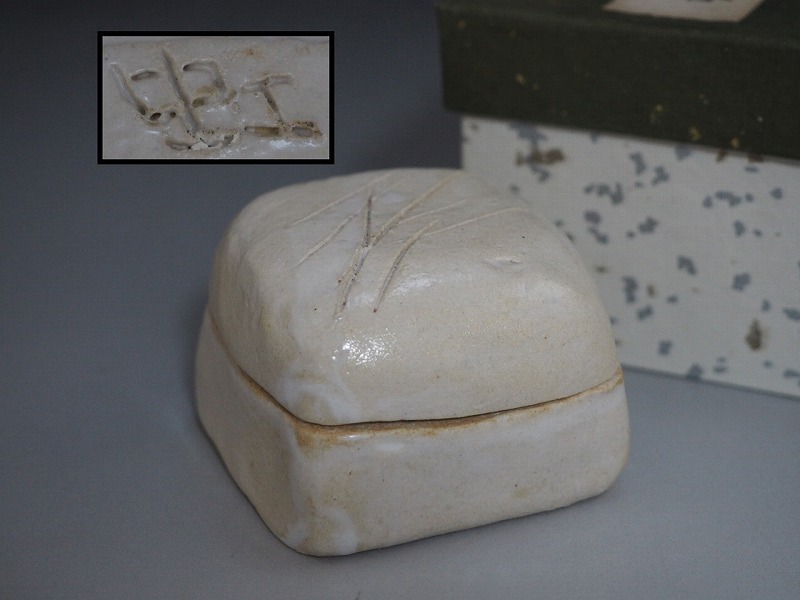 | A4304 陶印有り 掻文 香合 ☆ 茶道具 抹茶器 抹茶道具 茶懐石 茶事 香道具 香盒 盒子 合子 陶器 作家物 在銘 陶印 窯印 美品 良品 無傷 | ||