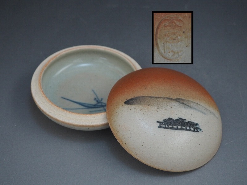 | A4303 出雲本宮焼 高橋幸治 夕景 香合 ☆ 茶道具 抹茶器 茶懐石 茶事 香道具 香盒 盒子 合子 陶器 作家物 在銘 陶印 窯印 美品 良品 無傷 | ||