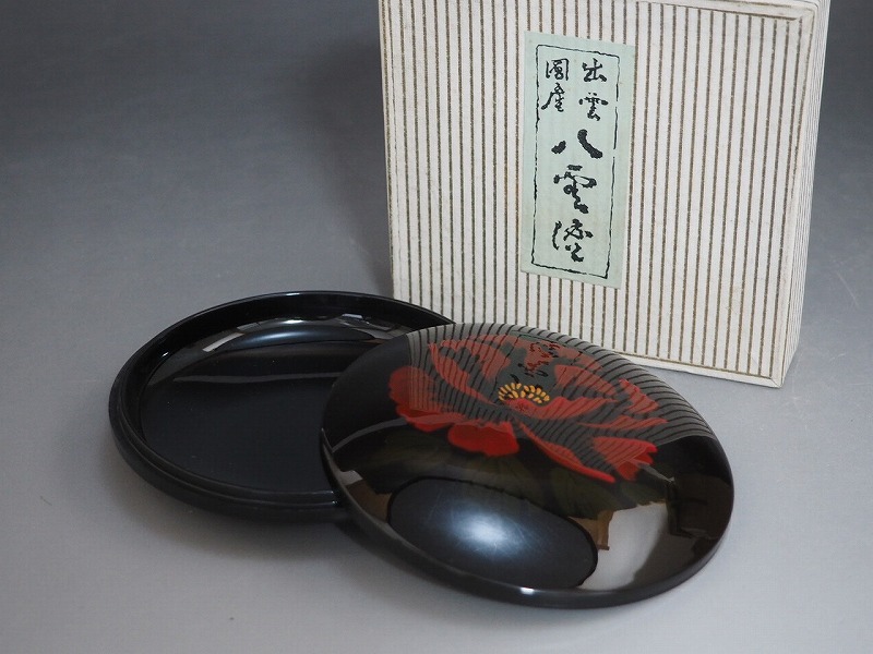 | A4310 八雲塗 大香合 化粧箱付 ☆ 直10㎝ 茶道具 抹茶器 抹茶道具 茶懐石 茶事 茶の湯 香道具 香合 香盒 盒子 合子 蓋物 漆器 漆芸 良品 | ||