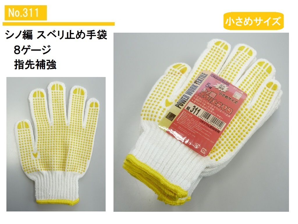 | No311 シノ編み すべり止め手袋 小さめサイズ 合計50双 | ||||
