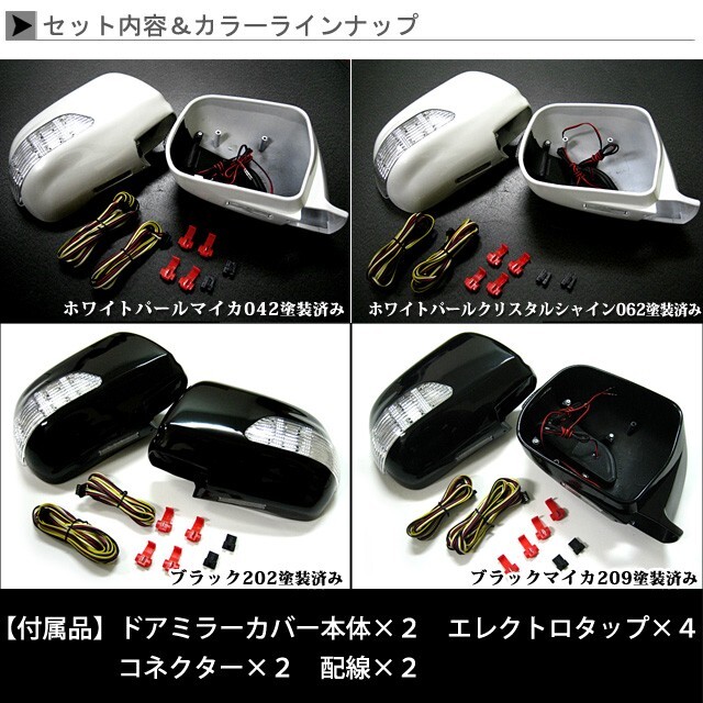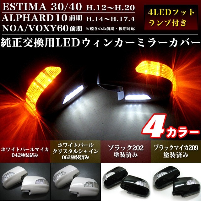 | ■新品 ■適合:エスティマACR/MCR 30/40(2000〜2005)/アルファード10系前期(H.14〜H17.4)/ノア・ヴォクシーAZR60系前期(ヴォクシー煌きのみ前期・後期対応) ■電動格納付きドアミラー車専用 ■純正交換タイプ ■LEDウィンカー:オレンジ ■LEDフットランプ:ホワイト ■セット内容:本体左右セット/配線左右/他コネクター類 ■塗装済カラー:【#042】ホワイトパールマイカ |