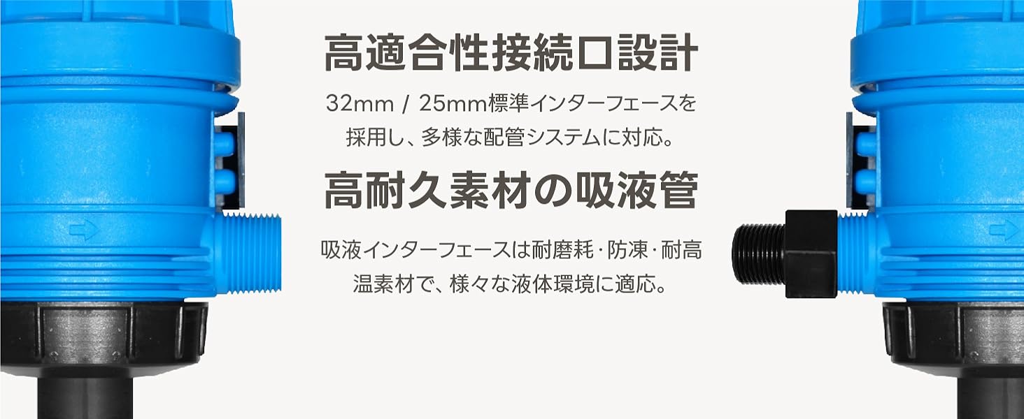 耐摩耗・耐高温素材の吸液ノズルで、様々な液体タイプに対応し、長期間安定した性能を発揮します。