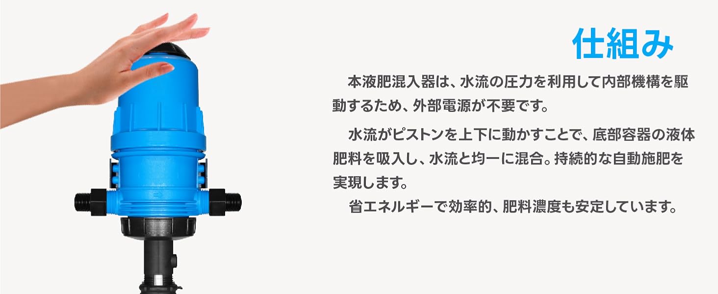 電力を使わない水圧駆動システムで、屋外や電源のない環境でも問題なく使用できます。