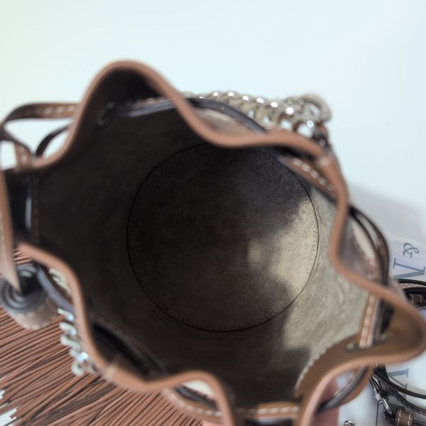 小さいながら存在感があり、繊細に揺れるフリンジが特徴的です。 キャンバス地とレザーのコンビネーション 生成りのキャンバス地とキャラメルのようなトフィーブラウン シルバーのチェーン部分は取り外しできません 新品未使用 特筆すべき難点のないお品です。 |