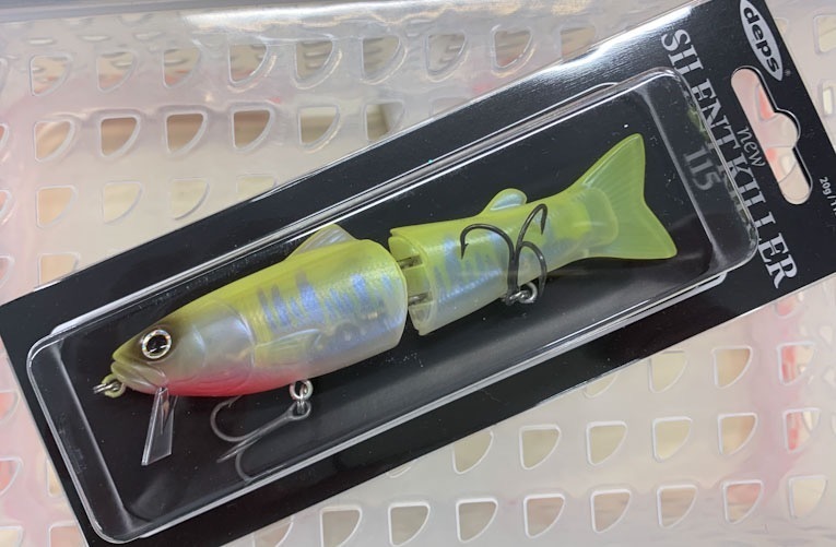 | deps New サイレントキラー 115。115mm、20g。 カバー回避能力に長けた“サイレントキラー”に、あらゆるフィールドに生息するベイトフィッシュサイズへとサイジングされリアルに作り込まれたフォルムにより、カバーに潜むフィッシュイーターに違和感なくバイトへといざなう115mmサイズのジョイントベイトです。 ソフトシェルに包まれたボディはABS樹脂製中空コアボディが採用され、高浮力によるハイピッチでキレのあるクランキングアクションで、シャロークランクのような感覚でカバー攻略が可能。また瀕死のベイトフィッシュを演出するデッドスティッキングや表層引き、クリアアップ時にも効果的にバイトに持ち込むことができます。 |