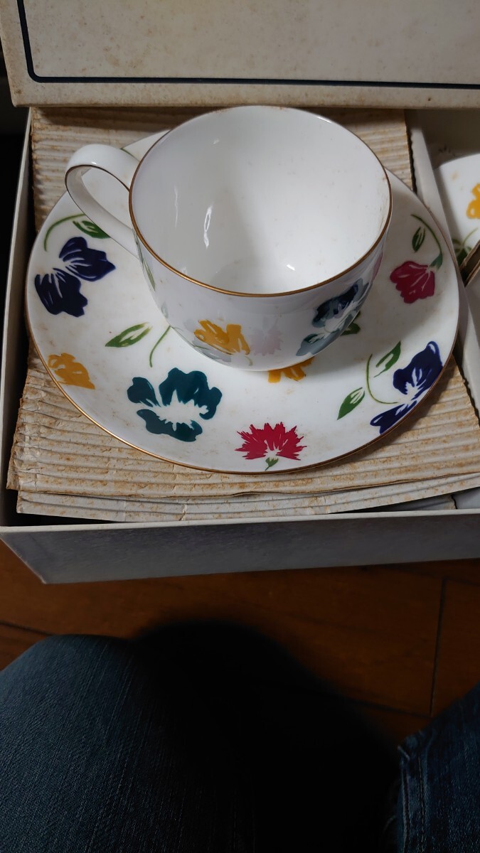 (評価の浅い方は特に必ず最後までお読み下さい!連絡無しでキャンセルされると直ぐ悪いの評価で反応されます。新規の方入札されましても削除します。)価値観の違いや感じかたにも個人差があります。説明文しっかり読んで下さい!入札、落札後のお取り消しは出来ません!返品不可を選択しています。未使用ですが長期保管の(捉え方に個人差劣化等)お品です。保管時による汚れが多々有ります。(以前保管時による汚れを未使用にも関わらず洗って置いていた物の汚れだと言い張って返品を受けた経緯が有ります。)サイズ-7.5×6㌢ソーサー 15.5㌢です。詳しく無いので画像で確認して下さい。神経質&極端にルーズな方はご遠慮下さい!書ききれない説明もあります。見落としも ありますのでご理解のある方のみ入札をお願い致します。また 、新規&評価の浅い方などはトラブル回避のため予告無しに入札のお断り、気付いた時点で取り消しをしますのでご了承下さ い!落札後の返信メールは必ず24時間以内にお願いします。 質問などの返答にお時間が掛かる場合もあります。その他色 々出品しています。少しでも気になられる方はご遠慮下さい! 説明にも個人差があります。ご理解ない方のご入札はお断り致します!その他不明点はご質問下さい。領収書の発行はしておりません。