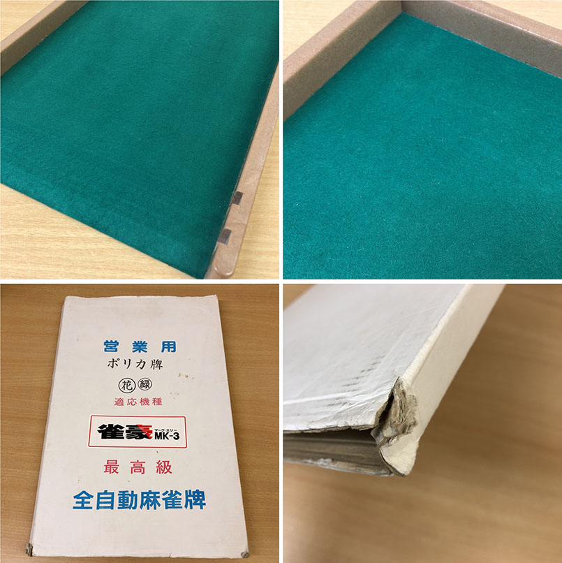 こちらは全自動麻雀卓「雀豪MK-3」専用 全自動麻雀牌 雀豪マーク3 146牌 ポリカ牌 黄色 点棒のおまけ付きです。 中古品です。 全自動麻雀卓【雀豪MK-3(マークスリー)】の専用牌です。 字体の大きな見やすい牌です。 【コンディションについて】 使用に伴うスレなどがあります。 大きく目立つダメージなどは見受けられませんでした。 牌、点棒の種類については画像でご判断下さい。 パッケージの表記と中身は色が異なります。 (パッケージ側には(花)(緑)と表記がありますが牌の背面色は黄色です) パッケージに破れや汚れがあります。 詳細につきましては下記画像も併せてご参照ください。 ![]() 再良市場の他のお品物はこちらから!