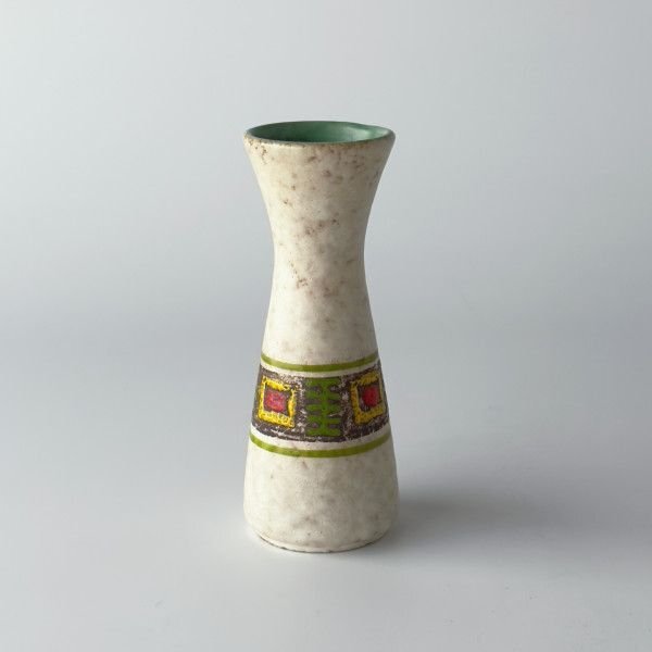 1926年にドイツで設立された陶器メーカー。特に1950〜70年代にかけて、鮮やかな色彩や個性的な釉薬を用いたFat Lavaスタイルの花器や装飾品で人気を博しました。高品質な手作業による仕上げと、独特のテクスチャーが特徴で、現在もヴィンテージ市場で高く評価されています。大胆なデザインからシンプルなフォルムまで幅広く展開し、ドイツ陶器を代表するブランドの一つとして知られています。