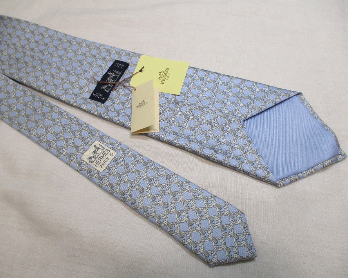 HERMES エルメス ネクタイ フランス製 100%シルク 【カラー】水色系ベース 【およそのサイズ】全長:149.5㎝ 大剣幅:9.5㎝ 【状態】未使用品 【付属品】箱・紙タグ・ブティックカード |