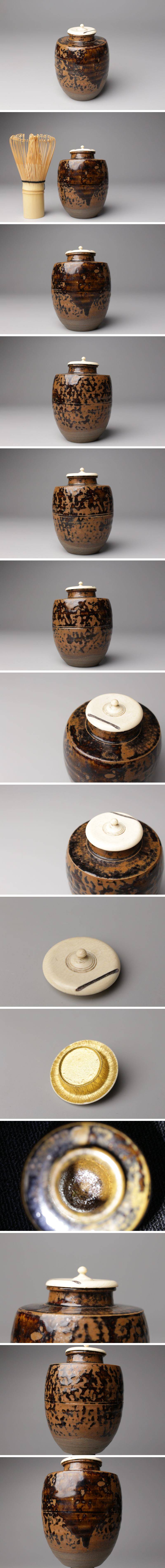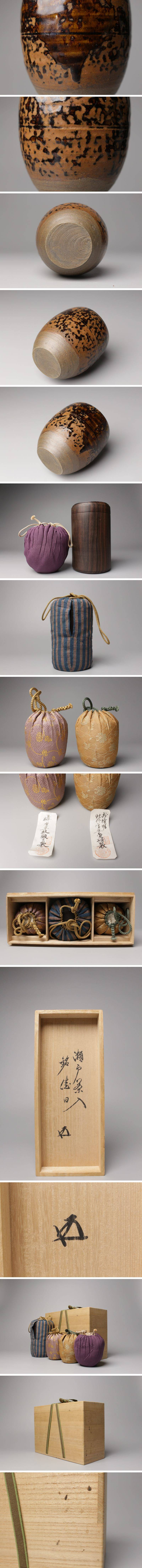 * * * 商品詳細 * * * ここでしか出逢うことのできない唯一の美をご紹介させて頂きます。 茶陶名品 ― 古瀬戸 椿手 肩衝茶入 銘「佳日」。 温かな飴釉の景色に、長い歳月を経た瀬戸古窯の気韻が息づく、まさに茶陶の真髄を映す逸品です。 肩の張り具合、胴に流れる釉景、そして高台に至るまでの流麗な姿―― すべてが端正にして品格高く、古瀬戸ならではの静謐な風情が漂います。 銘「佳日」は裏千家 鵬雲斎宗匠のご命銘。 晴れやかでありながら、どこか慎ましやかな響きを持ち、 この茶入の柔らかな景色と見事に呼応しています。 名匠の審美と千家の心が響き合う、まさに「一佳日」にふさわしい名品。 茶席を格調高く彩る、至高の一碗としてこの機会に是非ご堪能下さい。 ■商品内容/ 茶入、仕服4点、挽屋、仕服、書付箱 ■サイズ/横6.5㎝×高9㎝ 箱:横26.5㎝×高18.5㎝×奥行19.5㎝ ■状態/ 経年によるスレ、小傷、汚れ 箱にスレ、傷、汚れがございます。 ※写真にてご確認、ご了承の上ご入札下さい。