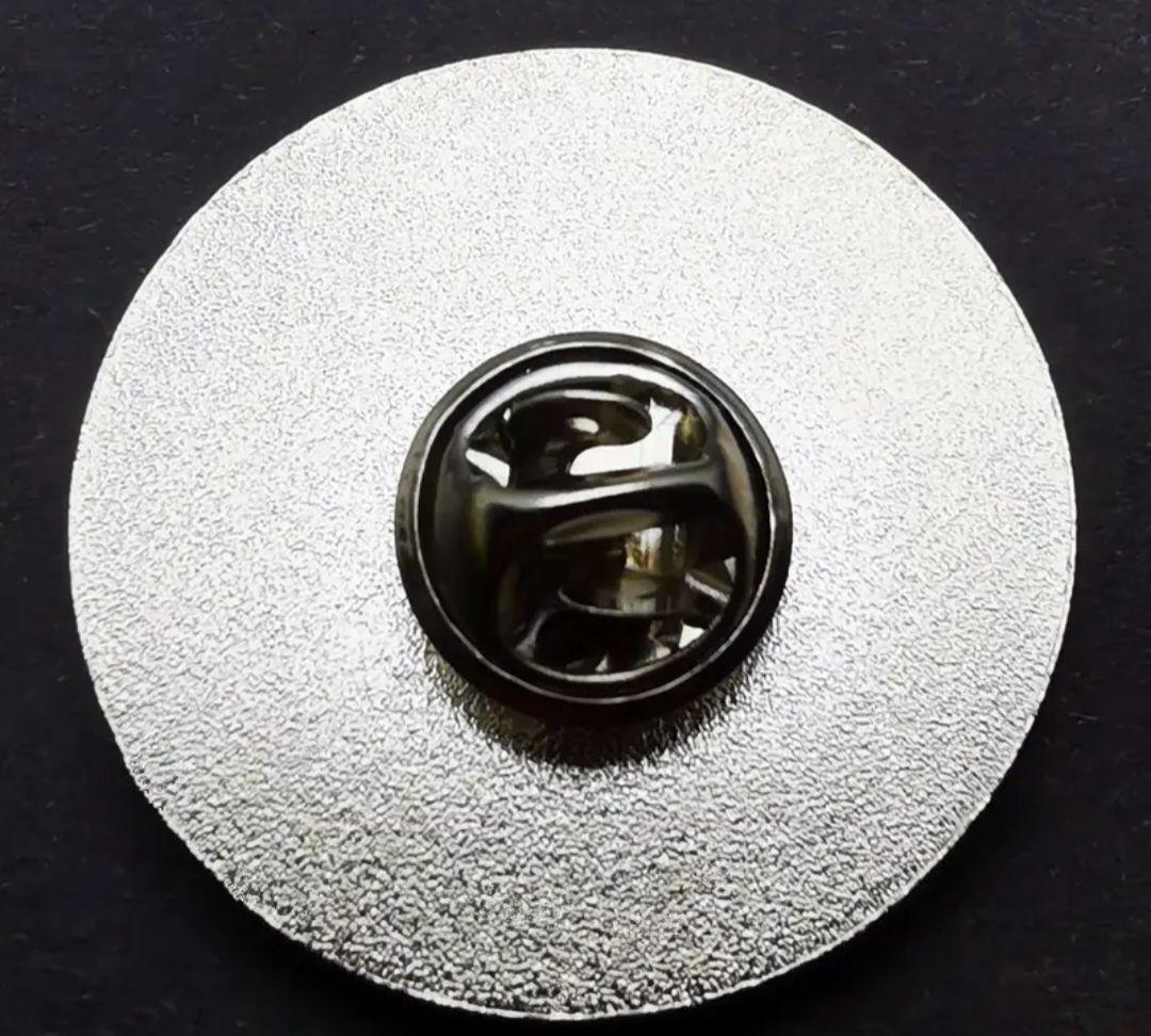 完全に平たいピンバッジではなくほんのりボタン型にぷっくりしてる感じの素敵なピンバッジです!3枚目の画像をご参考ください。