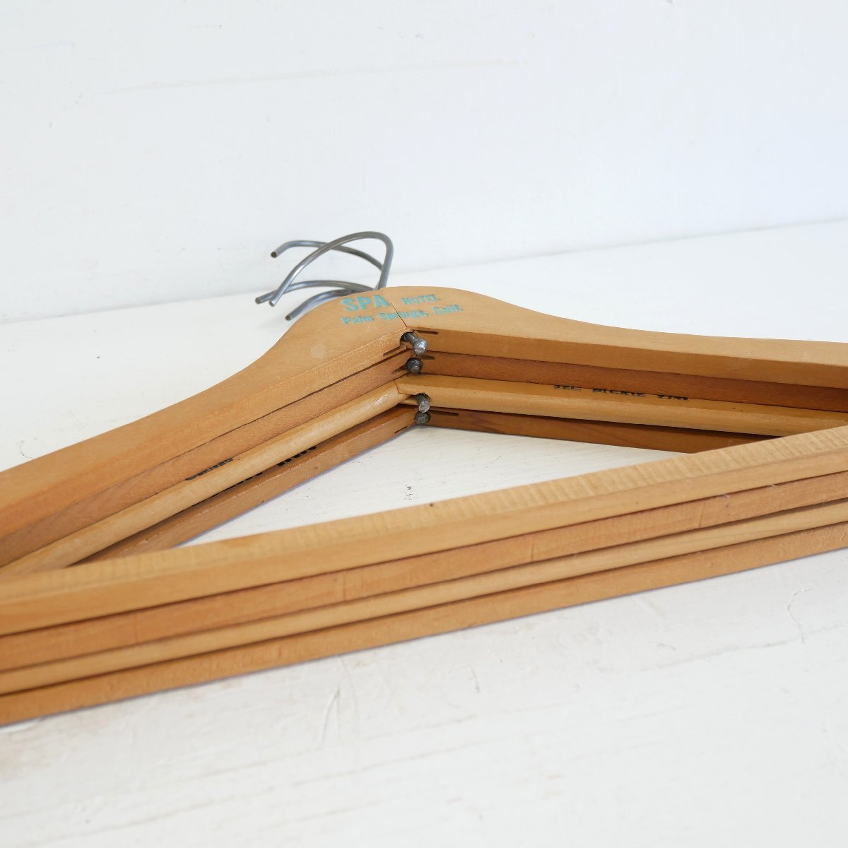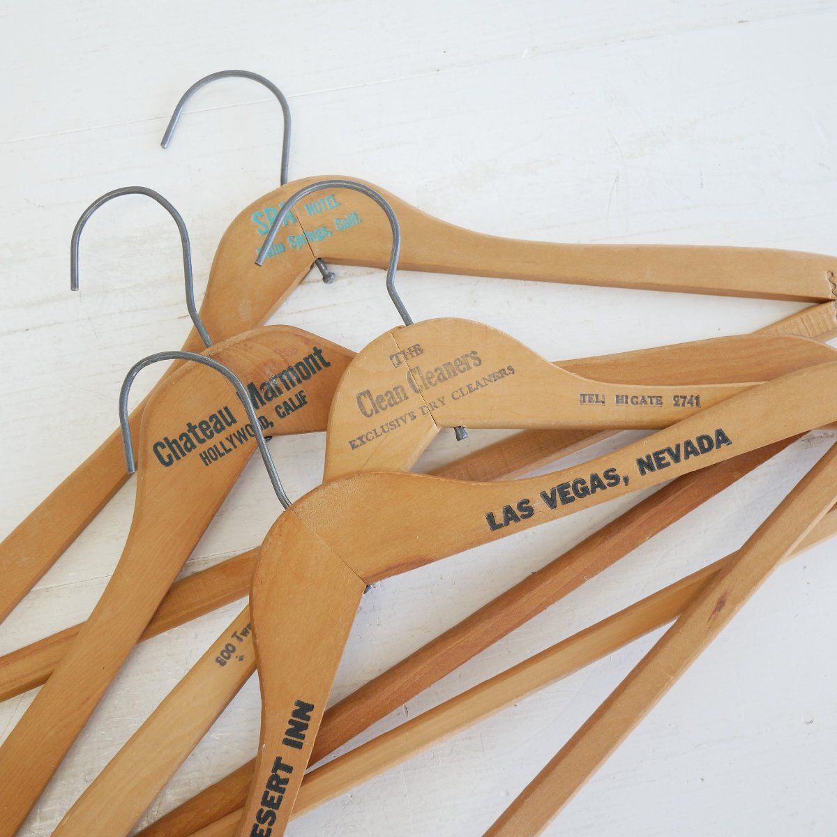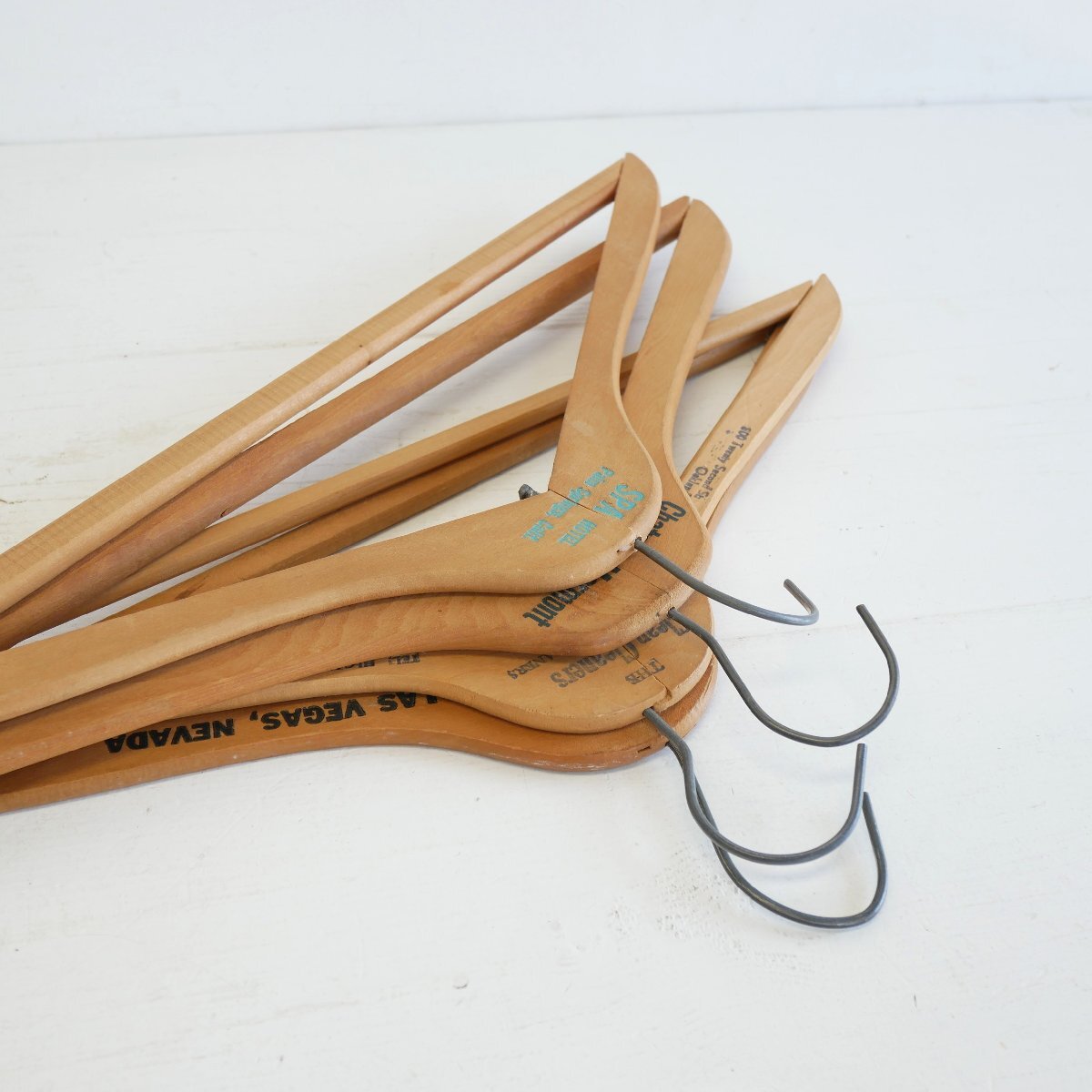 | 商品説明 explanation | カリフォルニア州にあるホテルやハリウッドにある店舗、オークランドにあるクリーニング店やラスベガスにあるホテルで使われていた、木製ハンガーです。 ※4本セット お洒落なアイテムを、ディスプレイ小物などにいかがでしょうか。 |