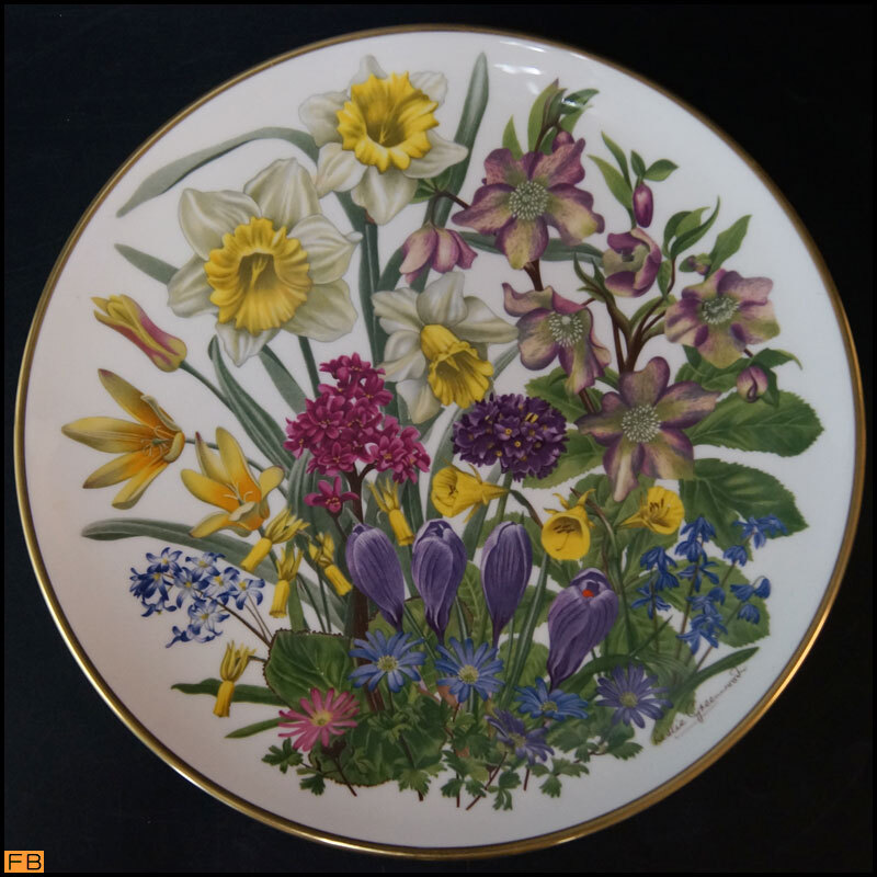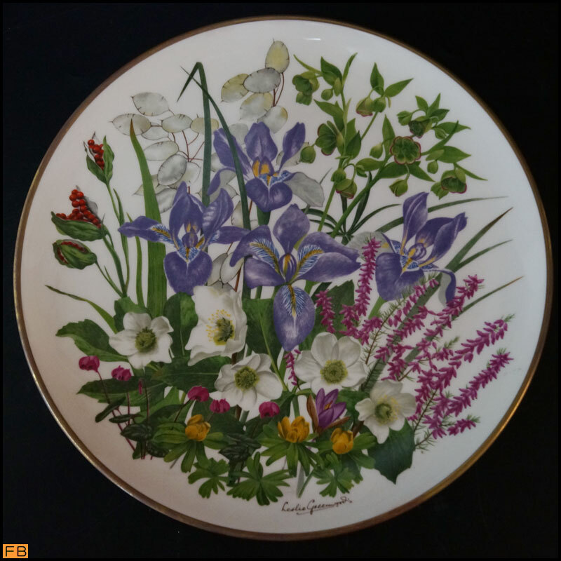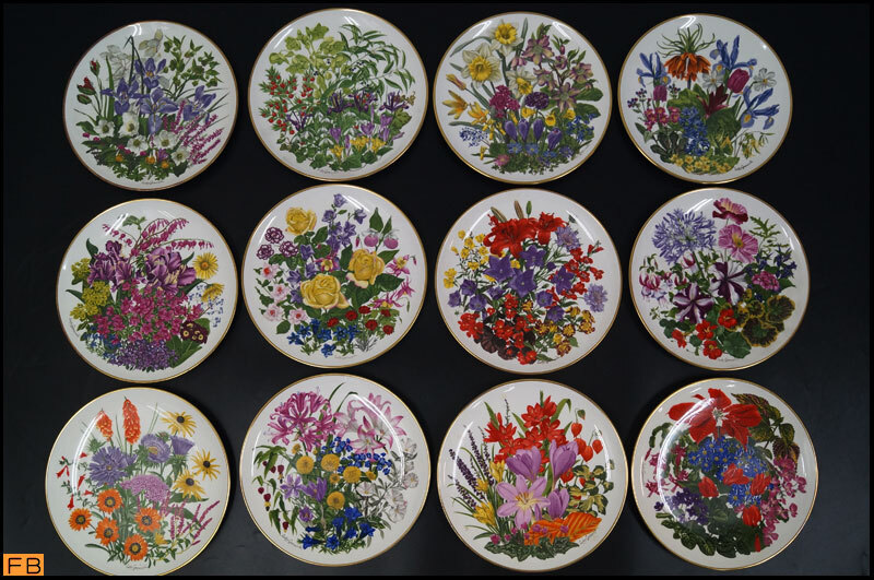 1773-限定品◆ウェッジウッド 飾り皿 12枚セット フラワーオブザイヤー プレート レスリー・グリーンウッド 花 英国製 フランクリン・ポーセリン WEDGWOOD