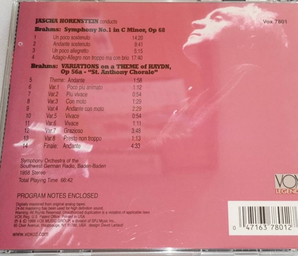 | 商品説明 | 中古としてはきれいです VOX 原盤 ヨハネス・ブラームス (1833-1897) : [1] 交響曲第1番 ハ短調 OP.68 [2] ハイドンの主題による変奏曲 OP.56a ヤッシャ・ホーレンシュタイン (指揮) 南西ドイツ放送交響楽団 (バーデン=バーデン) 録音: 1958年 |