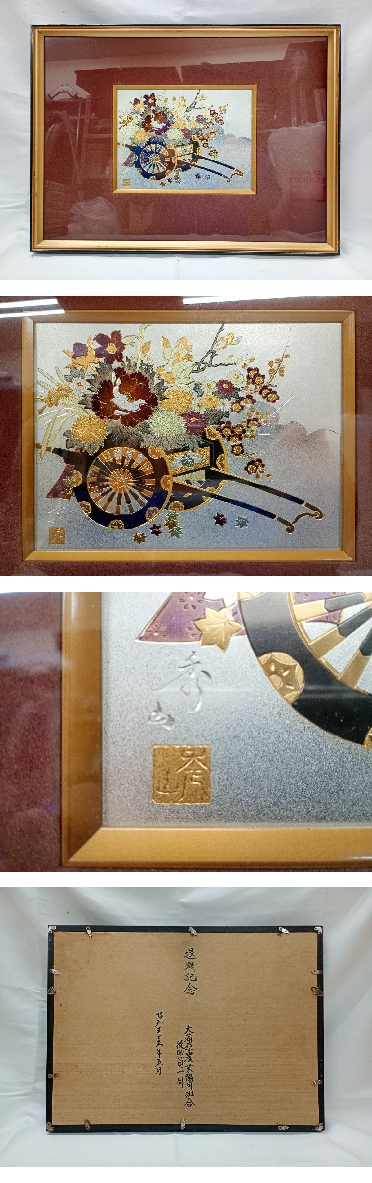 | ◎額 彫金色絵銅板額 源氏車 御所車 彫金師 中谷秀山 作 芸術品 美術品 貴重品 インテリア 即発送 | |