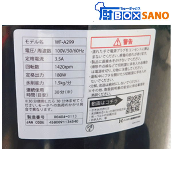 | 名 称 | ハイガーアイススライサー WF-A299 業務用 中古 sano6468 |