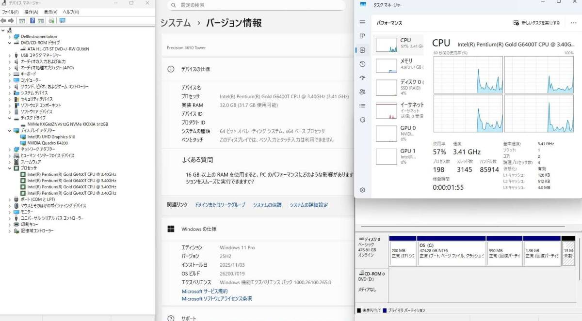 状態・動作状況 ■Windows11 Pro 64bitをインストールしての動作確認となります。