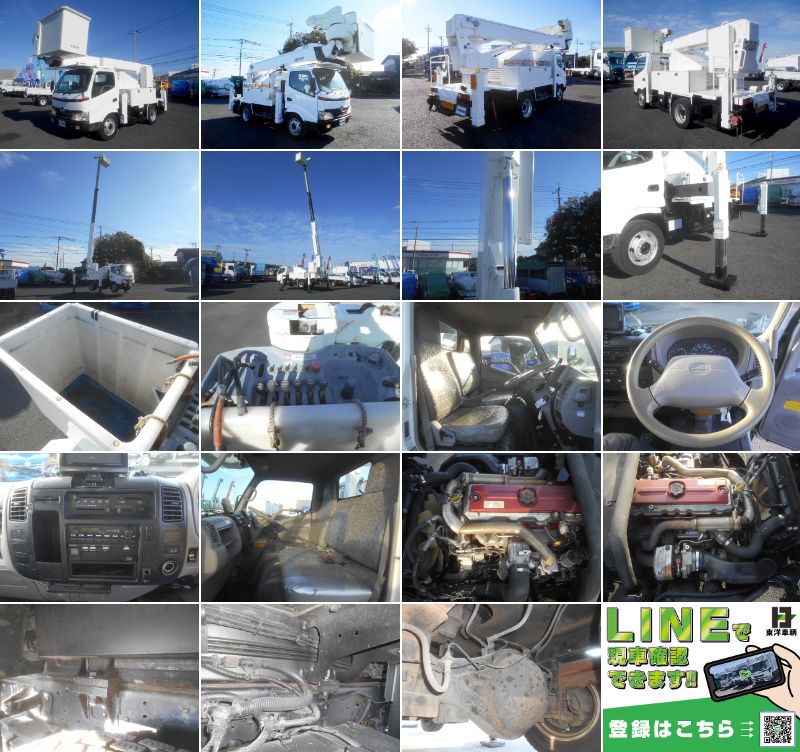 高所作業車 上物:タダノ製SKYBOY 上物同年式 上物型式:AT-146TE 電工仕様 地上高14.5m 別エンジン FRPバケット ウインチ付 バケット昇降機能 自動格納機能 現アワメーター:143h ユニットアワメーター:3488h 150馬力 走行14.7万㎞ 5速ミッション 中型限定(総重量8t未満)免許 排ガス適合(各都市登録&乗り入れ可) タイヤサイズ:215/70R17.5 |