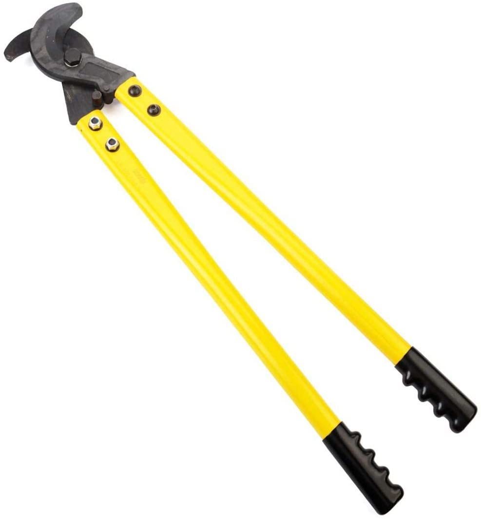 商品仕様 外径Φ38mmまでのケーブルを迄の銅線やアルミ線をキレイに切断するケーブルカッターLK-500です。 外形寸法:L800mm 重量:2.8kg 用途:外径500sqまでの銅線やアルミ線を切断します。 電線外径:最大Φ42mm(銅線最大Φ38mm) 電線サイズ:500sq迄(*重要:銅製単線の場合、切断径幅が400sqまで)。 *注意:銅線やアルミ線の切断以外にご使用しないでください。SUS線・真鍮線などの切断に使用できません。 ご注意(免責)>必ずお読みください ●感電の恐れがありますので、活線作業は行わないで下さい。 ●安全の為に保護メガネを着用して作業して下さい。切断物が飛び散りますので、周囲に人や壊れやすい物がないことを確認してから作業して下さい。 ●硬い材質、ピアノ線などの切断に使用しないで下さい。 ●両端のボルトとナットを締めて隙間を調整しないで下さい。セットピンが破損する原因となります。 商品特徴 【特長】 ・頑丈で切れ味鋭い。 ・ハンドルは持ちやすく、取り扱いも簡単なので初心者にも扱えます。 ・全パーツはオイル焼き入れ焼き戻し処理済みの特殊鋼製。 IWISS アイウィス「IWISS」はプライヤやペンチを主力とした工具類が販売され、ドイツやアメリカをはじめ、世界50か国以上で販売されているの人気ブランドです。 発売されたオープンバレル用圧着ベンチやワイヤベンチがEUやアメリカのECサイトでベストセラーランキングで何度も1位になっている大ヒット商品です。高品質な材料から作られたそれらの製品はその精度と実績から高い信頼を得ています。 | |||