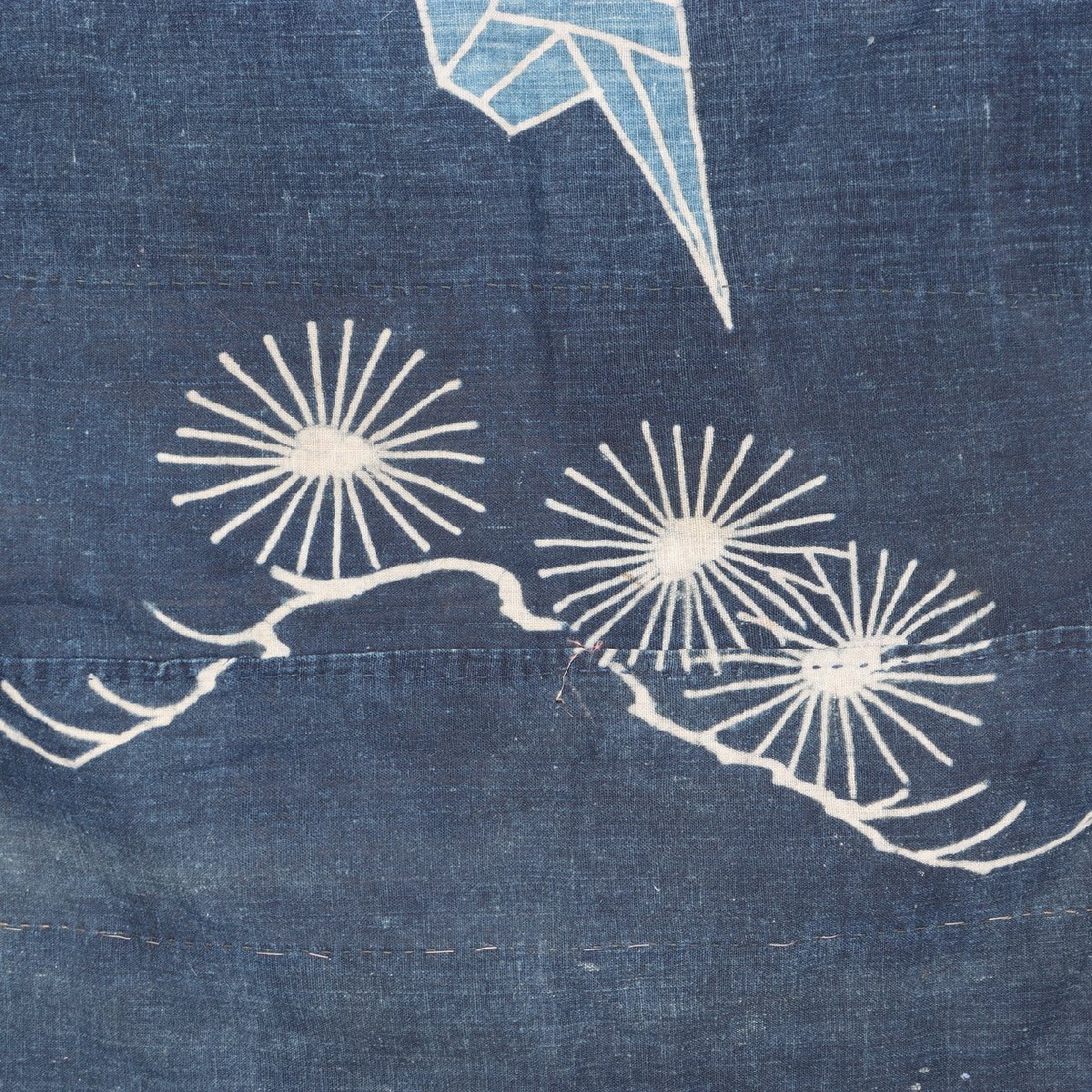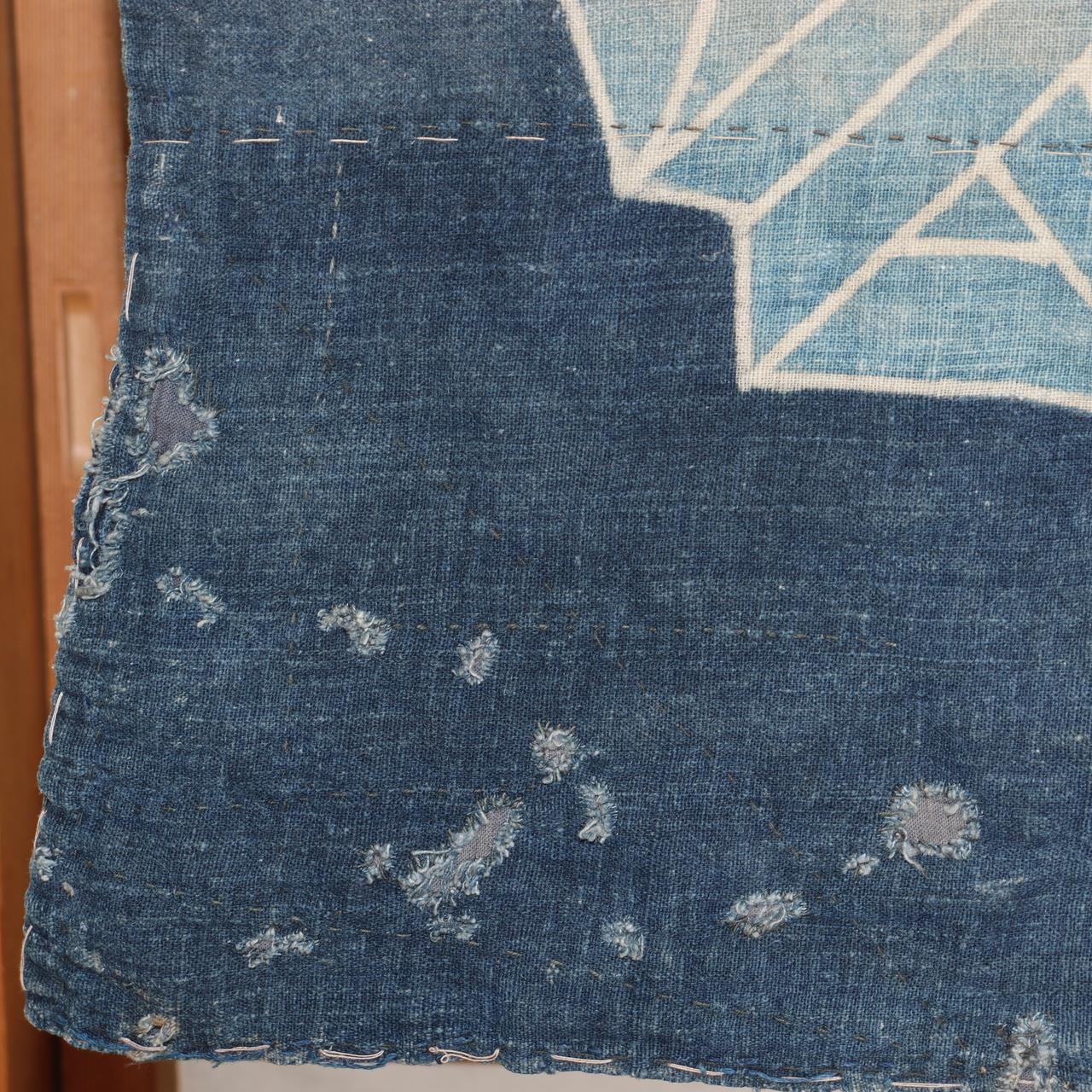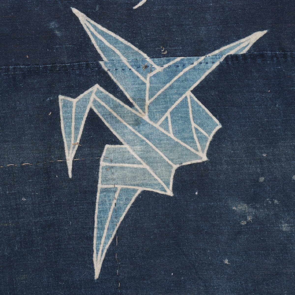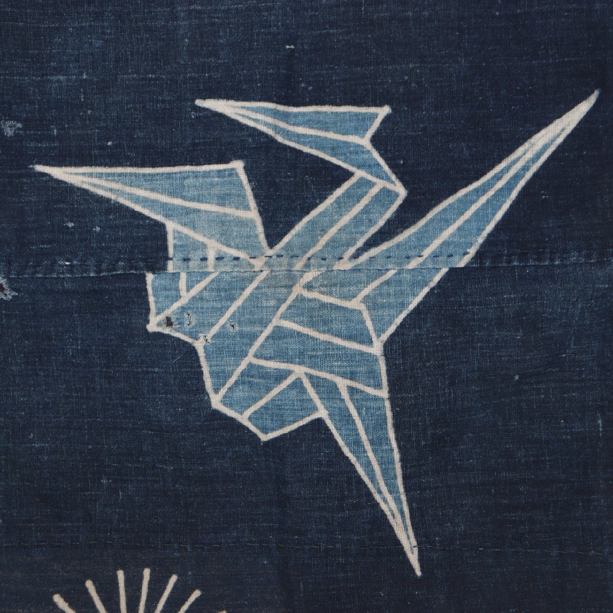 ◆ 商品説明こちらは日本の伝統的な藍染木綿布で、筒描技法による鶴と菊の意匠が描かれています。藍染の深い青に、淡い水色の鶴と放射状に広がる菊文様が施され、素朴ながら力強い民芸美が感じられる逸品です。 布地は長年の使用と補修を経て残されており、補修布が施されぼろの風合いを有しています。 【サイズ】 126cm × 136cm(約49.6 × 53.5インチ) 【状態】 裂け・補修跡・色褪せ・シミがございます。 当方は骨董品を中心に取り扱っており、安心してお取引いただけるよう丁寧な対応・梱包を心がけております。 ◆ 商品について