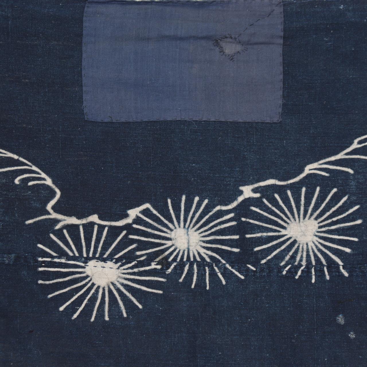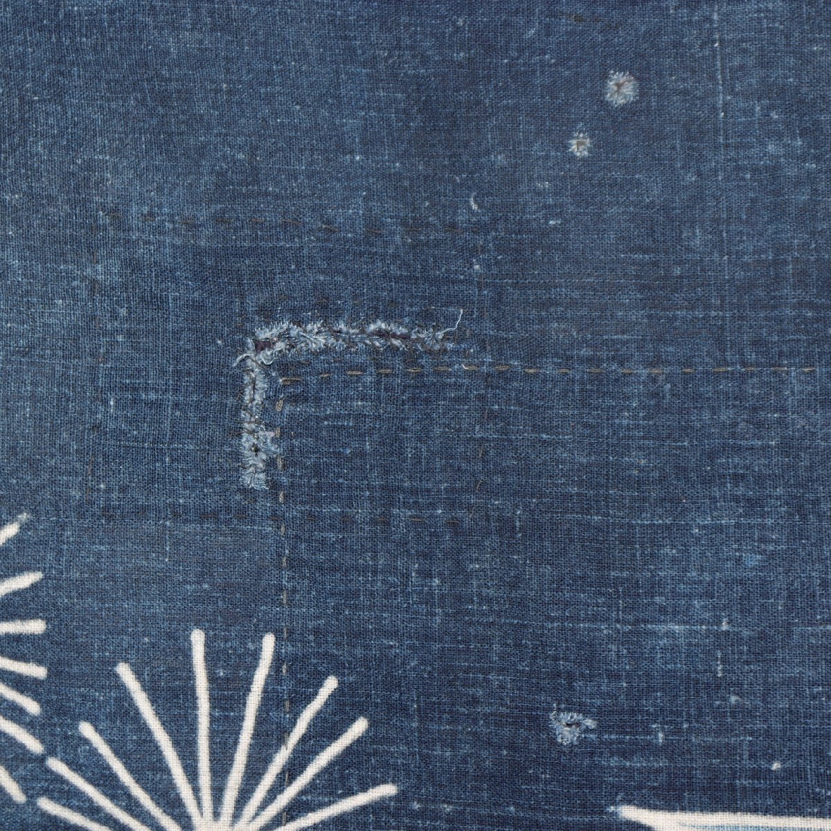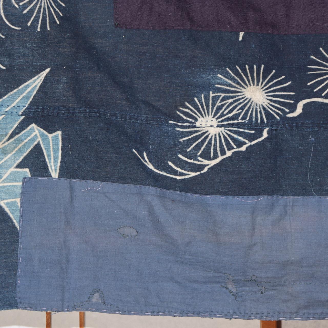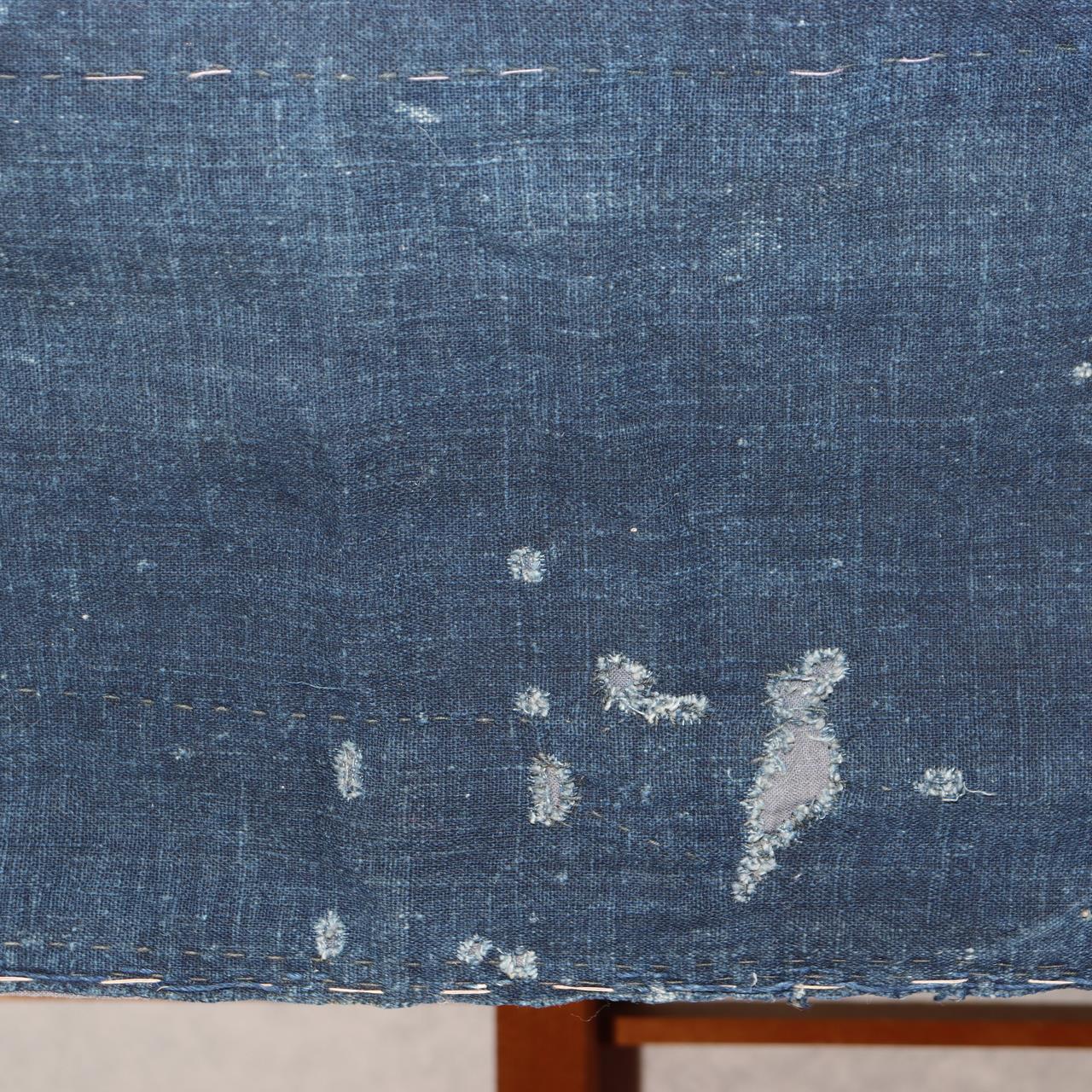 ◆ 商品説明こちらは日本の伝統的な藍染木綿布で、筒描技法による鶴と菊の意匠が描かれています。藍染の深い青に、淡い水色の鶴と放射状に広がる菊文様が施され、素朴ながら力強い民芸美が感じられる逸品です。 布地は長年の使用と補修を経て残されており、補修布が施されぼろの風合いを有しています。 【サイズ】 126cm × 136cm(約49.6 × 53.5インチ) 【状態】 裂け・補修跡・色褪せ・シミがございます。 当方は骨董品を中心に取り扱っており、安心してお取引いただけるよう丁寧な対応・梱包を心がけております。 ◆ 商品について