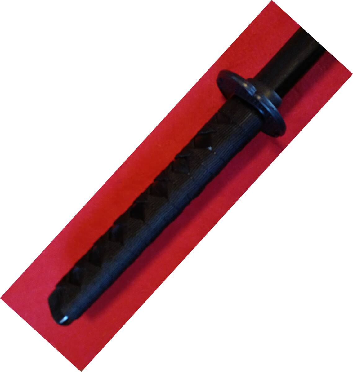 新品の黒く塗ったつば付きの木刀です。つばは取り外しができます。