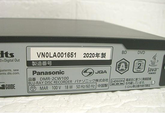 パナソニック 1TB 2チューナー ブルーレイディスクレコーダー DMR-2CW100 2020年製 ソニー ブルーレイレコーダー 札幌市 白石店