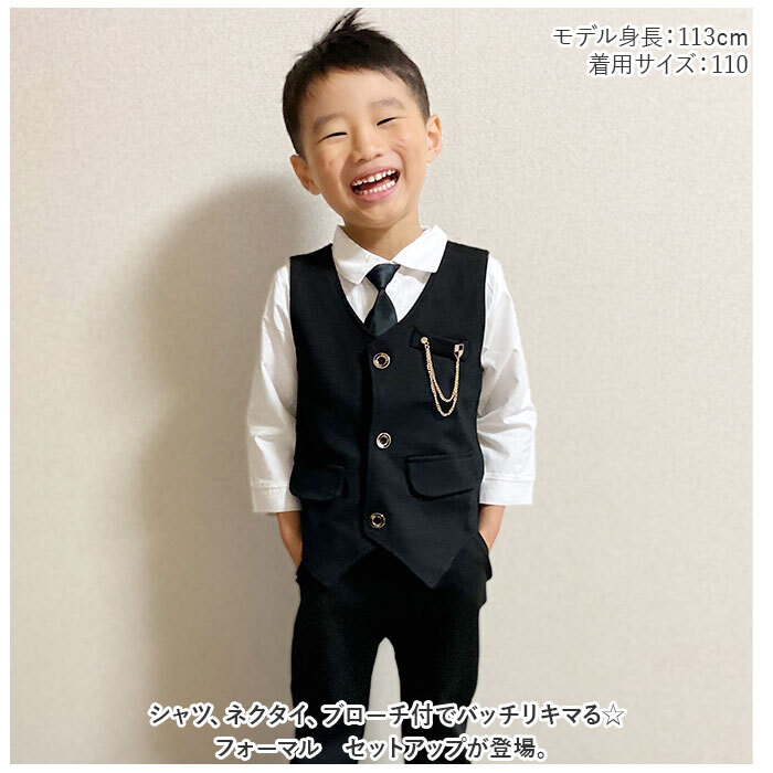 | 商品説明 | ・・シャツ、ネクタイ、ブローチ付でバッチリキマる☆フォーマル セットアップが登場。 ・【フォーマルにキマるセットアップ】 ・フォーマルシーンにぴったりの、ベスト&パンツのセットアップ。一式揃っているので、これを着るだけでOK。バッチリ決めたい日に活躍! ・【ワンタッチネクタイ】 ・ネクタイ結びが完成している、ゴム仕様のネクタイがセットに。首に通すだけのワンタッチネクタイなので、苦しくなく簡単に着けられる! ・【高見えボタン】 ・シャツとベストには、ツヤっとゴールドを使ったボタンを搭載。しっかり高見えする仕様で、かっこよく仕上がる。 ・【ラクチンの着心地】 ・ウエスト部分は幅広のゴムを使用。ラクチンな着心地。ベストとパンツはストレッチ性があるので、お子様の元気な動きにもフィット。 ・【チェーンブローチつき】 ・キラリと輝く、チェーンブローチつき。胸元を華やかでスタイリッシュにキメるアクセント。 ・※チェーンブローチのピンが尖っている為、開封時にご注意下さい。 ・【様々なシーンで】 ・七五三などのイベント、冠婚葬祭、卒園式、入学式、入園式など、様々なシーンで使える。 |