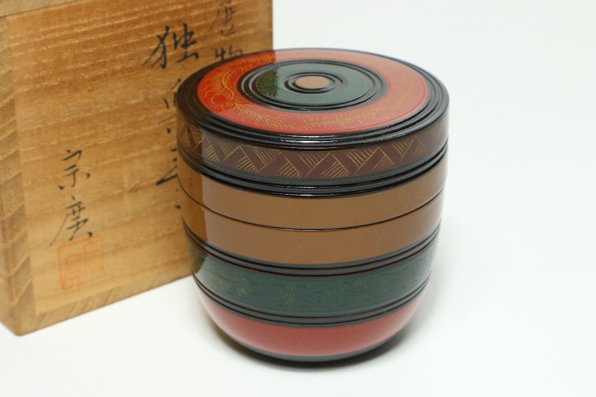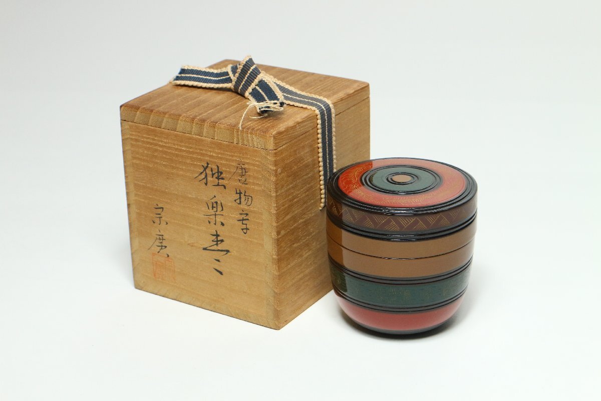 | ・道場宗廣 唐物写 独楽棗 共箱 /茶道具 漆美術 独楽塗 |