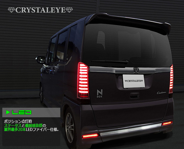 | ■商品説明■ | クリスタルアイ新製品N-BOX(+/カスタム)用 ファイバーフルLEDテールV2 流れるウインカーのシーケンシャルタイプのV2になって新登場。 (シーケンシャルウインカーは、テール内にスイッチが内蔵されてますので お好みで通常点滅にも切り替えが可能です。) V2は、ファイバー部が非点灯時でもリアが引き立つ レッドバー仕様(レッドタイプは除く)となり 革新的なルックスに向上しました。 ファイバーテール側面まで回り込んだ左右合計20本の 業界最多 高輝度LEDチューブが 圧倒的インパクトの最上級LEDテールランプです。 抜群の視認性と迫力をリアスタイルにプラス。 カスタムに取り付けの際は、お好みで 付属のクロームメッキベゼルを取り付けることにより、 純正のデザイン、ボディラインを崩すことなく取り付けが可能です。 また、テールランプ内部に反射板が内臓されておりますので 全てのグレードへ取り付け可能です。(スラッシュは除く) テールランプカラー レッドバーが引き立つブラックタイプとなります。 ■新品左右セット ■ブラックタイプ ■流れるウインカー仕様(通常点滅にスイッチで切り替え可能) ■メッキベゼル付属 ■ハイフラ防止抵抗付属 ■取り付け説明書付属 ■フルLEDスペック ■高輝度ファイバー左右合計20本 ■ブレーキLED:左右合計LED数32発 ■LEDウインカー:左右合計LED数16発 ■LEDバックランプ:左右合計LED数16発 点灯動画はこちら ※3眼フルLEDヘッドライトも出品中。 |