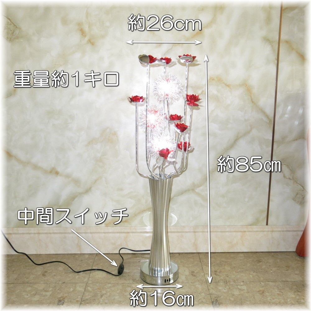 ![]() 【送料無料!】新品 可愛いフラワー アルミ製 LED付き フロアスタンド ☆LED電球3灯(¥1500-相当)付きで驚きのプライス! 【送料無料!】新品 可愛いフラワー アルミ製 LED付き フロアスタンド ☆お部屋・店舗のインテリアとして最適な可愛い・LEDフロアスタンドです♪ ☆素材はアルミ製でシンプルなデザインです ☆サイズは高さ約85cm 幅約26cm 台幅約16cmで完成品でお届けさせていただきます ☆スイッチは配線にON/OFFの中間スイッチがございます ☆付属電球・・・白色LED電球3灯 ☆暖色LEDご希望の場合はご注文後にお申し付け下さい ☆商品画像は白色LEDを装着し撮影しております ☆可愛い花のアルミ製LEDフロアスタンドを是非この機会に! ![]() | |