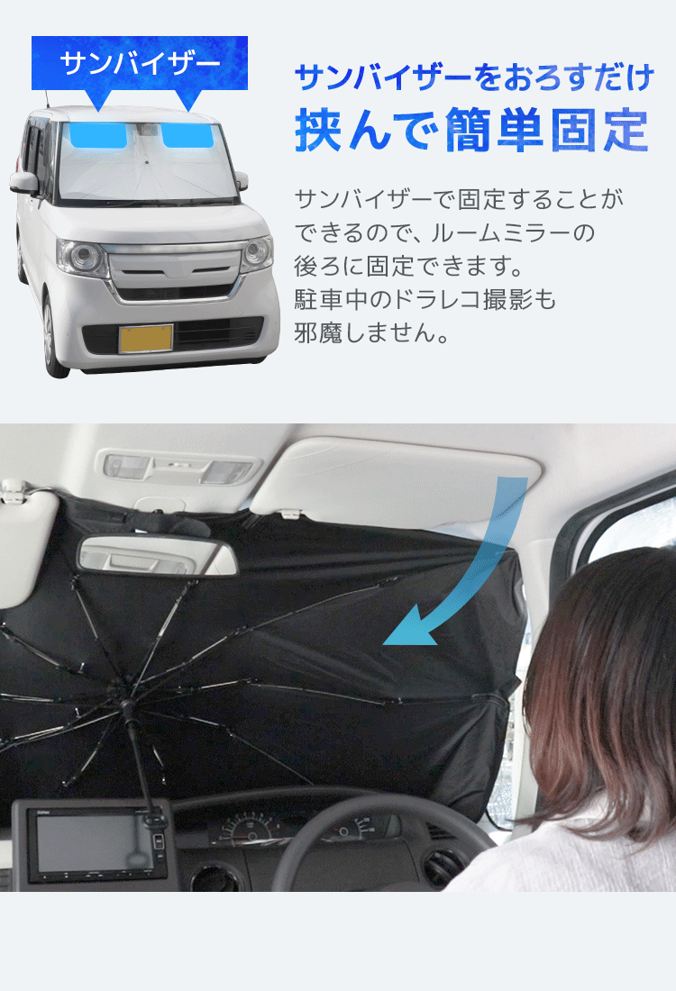| \取り付け簡単!紫外線を徹底ブロック/ 紫外線を99.9%遮断!車用 傘型サンシェードです。 直射日光を遮り、車内の温度上昇を防ぎます。 ★駐車時の日差しにるお悩みを解決! ・紫外線カットで車内インテリアの劣化を抑制。 ・赤外線カットで電子制御の誤作動や車内焼けを防止。 ・目隠し効果でプライバシーの保護に。 ★折畳み式傘型デザイン 傘のように広げてサンバイザーをおろし、固定して設置完了。 初めての方でも簡単に取り付けられる傘型設計となっております。 使わない時は、畳んで収納袋に入れサイドポケットにすっぽり収納♪ コンパクトサイズなので邪魔になりません。 ★10本骨&上部開口設計 グラスファイバー素材の軽くて丈夫な10本骨を採用。 強度、安全性に優れます。 上部にはルームミラーやカーレコーダーの開口部が設けられており、設置に便利なデザインとなっております。 ・車内のプライバシー保護 ・盗難防止 ・キャンプでの日除けとして ■商品コード:CUSD01BK ■商品仕様 サイズ(約):Mサイズ 135×75cm 重量(約):350g 材質:チタンシルバークロス、グラスファイバー、ゴム、PUレザー 内容:本体、収納袋 ■注意事項 ・商品は、モニターによって色合いが異なって見える場合があります。 ・仕様・デザインは改良のため予告なく変更することがあります。 ■保障期間 7日間 ※商品到着後7日以内の初期不良・破損のみご対応させていただきます。 【新品未使用品です】 |