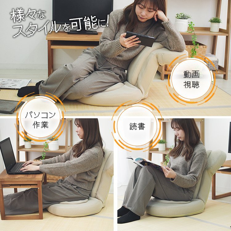 頭部分を倒せば、肘置きとしても使用することもできるので、自分に合った楽な姿勢を見つけることが出来ます。 座面には体に優しい低反発クッションを採用。 そして全面にメッシュ生地を採用しているので 通気性が良く、長時間座っていてもムレにくいのも魅力です♪ 大事な内部ギアは、世界でも活躍する実績ある日本メーカー「KoYo」の日本製! 14段階リクライニングで、曲げて、伸ばして、広げて・・・くつろぎ方、選び放題です♪ 使用シーンに合わせて、好みの角度に調整ができます。 【商品仕様】 カラー:ブラック 外寸サイズ:(約)幅47x奥行58x高さ52cm フラット時サイズ:(約)98cm 座面厚み:(約)12cm 重量:(約)3.2kg 素材:(表地)ポリエステル100% (中材)低反発ウレタン、ウレタンフォーム、スチールパイプ 【注意事項】 ・この商品はカバーリングではありません。(洗濯不可) ・生産ロッドが違う場合、柄/色味が若干変わってくる場合がございます。 ・商品を使用して発生した事故/トラブル/破損等につきましては一切の責任を負いかねます。 |