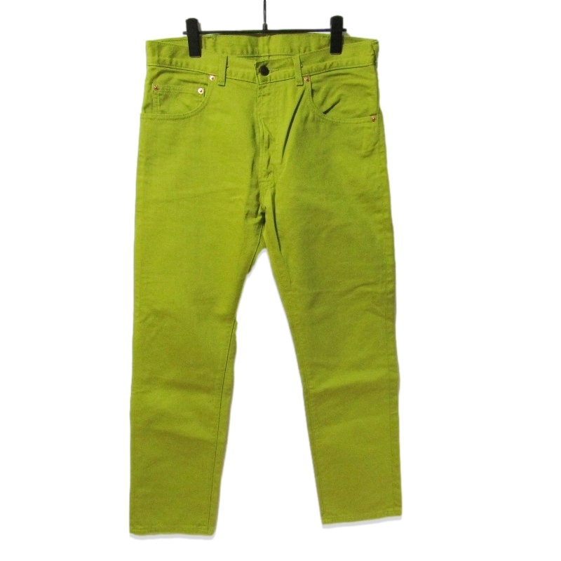| SIZE | 表記SIZE:33 ウエスト:約82cm 股上:約28cm 股下:約73cm ワタリ:約29cm 裾幅:約19cm 平置き採寸での計測となるため、公式サイトの計測と多少のズレが生じることもございますのでご了承ください。 計測には細心の注意を払っておりますが多少の誤差はご了承下さい。 |