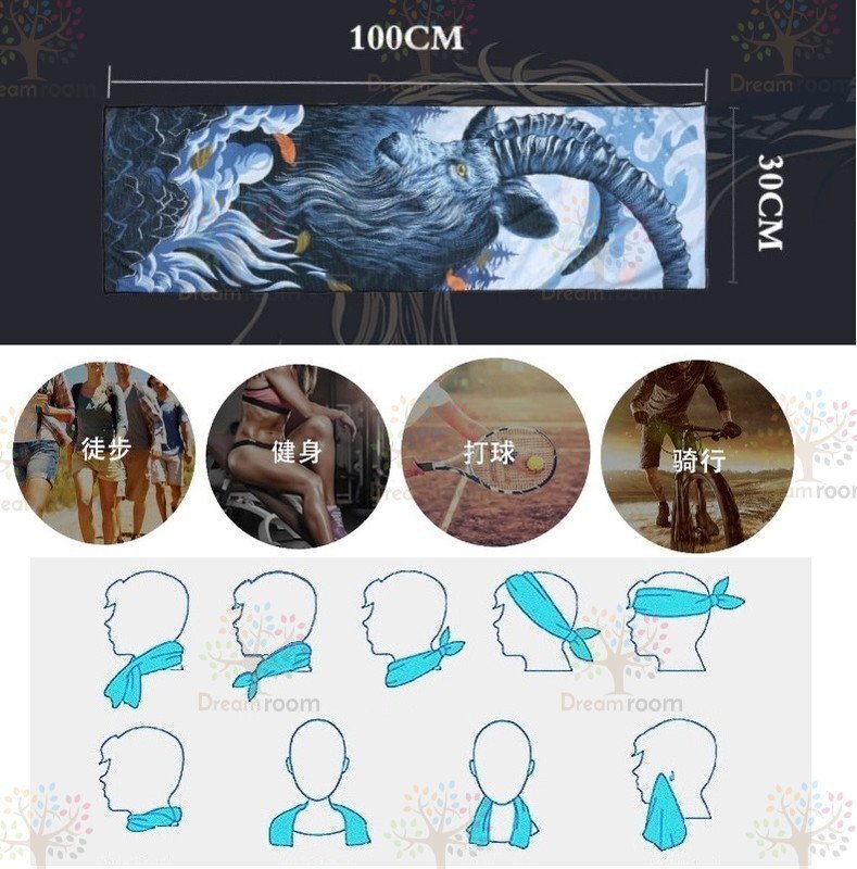 総柄 超冷感 アイスタオル スポーツタオル 熱中症対策 冷却タオル 瞬間冷却 速乾 紫外線カット 超速乾 超吸水 アウトドア F-209-29
