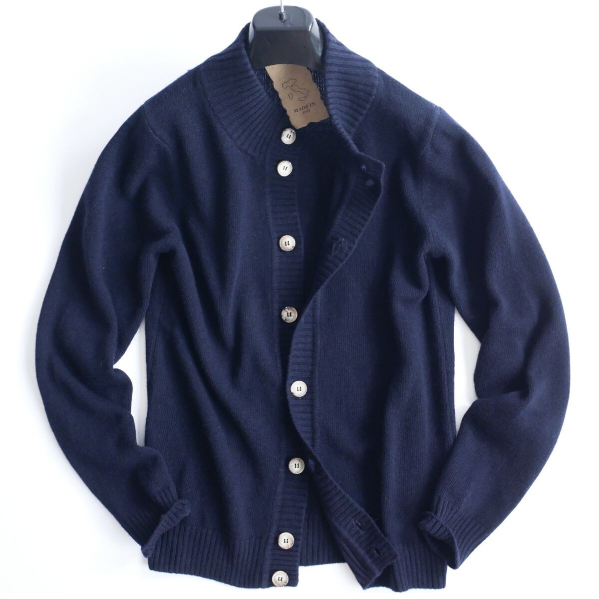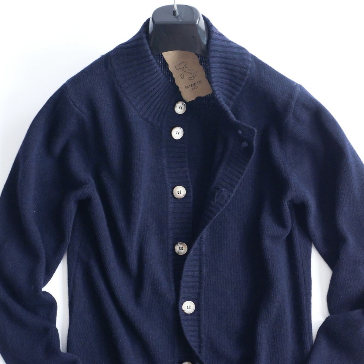 ●イタリアのスタイリッシュな感性と高い縫製技術が融合した「MM メイドインイタリー」より、ブランド用に製作された特別なカシミヤニットジャケットでございます。「MM メイドインイタリー」は、自社ブランドのみならず他のブランドへも製品提供を行なっており、信頼の証でございます。本品は、上質なエクストラファインメリノウールにカシミヤをブレンドし、柔らかく包み込まれるような極上の着心地を実現しております。 ●上品な光沢を帯びたミッドナイトダークネイビーの色調が、落ち着きのある大人の雰囲気を演出。襟元から前立て、裾にかけてリブ編みを配し、実際にご着用いただき、中程のボタンを止めていただきますとイタリアンニットらしい、すっきりとしたシルエットが楽しめ、ボディを引き締めて美しく見せていただけます。また、ボタンには美しいツヤを持つマーブル調ボタンを採用し、控えめながらも落ち着きが漂います。 ●立体的なリブ襟は首元をやさしく包み込み、カーディガンとジャケットの中間のような上品な佇まいに。肩から袖にかけてはスムーズなフィット感で、程よい厚みがありながら軽やかに羽織れる仕立てとなっております。 ●伸縮性に優れた素材で動きやすく、着心地も非常に快適です。シャツの上に羽織ってスマートカジュアルに、またはジャケットインとしてビジネスシーンにも対応できる汎用性の高い一着です。 ●シンプルな中にイタリアらしいエレガンスを感じさせる、大人のためのニットアウターでございます。 ●伸縮性あり。 ●色:ミッドナイトダークネイビー系 ●素材: ウール(エクストラファインメリノ)90% カシミヤ10% ●サイズ:XS S L XL XXLの中から、お選びいただけます。*ご落札後、取引連絡よりご希望のサイズをお申し付け下さい(後の変更・交換・キャンセルは一切して頂けません)。ご落札後、24時間以内のご連絡の程お願い申し上げます。*下記詳細サイズもご確認の上、よろしくお願いいたします。 ●詳細サイズ(cm)置いた状態で: XS *イタリアサイズ46相当。日本サイズ概ねMサイズ辺りとなりますが、着用時の伸縮により比較的多くの方に適応頂けそうです。下記詳細サイズもご確認の上、よろしくお願いいたします。 肩幅:36~46位*着用時かなり伸縮しますので、サイズ的な不安はなさそうです(右肩端~左肩端の直線距離) 身幅:46~*着用時伸縮します(右脇下~左脇下の直線距離) 袖丈:64(肩の縫い目~袖先) 着丈:63(襟の付け根~裾まで。襟の幅を含んでいません) S *イタリアサイズ48相当。日本サイズ概ねM-Lサイズ辺りとなりますが、着用時の伸縮により比較的多くの方に適応頂けそうです。下記詳細サイズもご確認の上、よろしくお願いいたします。 肩幅:37.5~47.5位*着用時かなり伸縮しますので、サイズ的な不安はなさそうです(右肩端~左肩端の直線距離) 身幅:48~*着用時伸縮します(右脇下~左脇下の直線距離) 袖丈:64(肩の縫い目~袖先) 着丈:64.5(襟の付け根~裾まで。襟の幅を含んでいません) L *イタリアサイズ52相当。日本サイズ概ねXLサイズ辺りとなりますが、着用時の伸縮により比較的多くの方に適応頂けそうです。下記詳細サイズもご確認の上、よろしくお願いいたします。 肩幅:40.5~50.5位*着用時かなり伸縮しますので、サイズ的な不安はなさそうです(右肩端~左肩端の直線距離) 身幅:52~*着用時伸縮します(右脇下~左脇下の直線距離) 袖丈:64(肩の縫い目~袖先) 着丈:67.5(襟の付け根~裾まで。襟の幅を含んでいません) XL *イタリアサイズ54相当。日本サイズ概ねXXLサイズ辺りとなりますが、着用時の伸縮により比較的多くの方に適応頂けそうです。下記詳細サイズもご確認の上、よろしくお願いいたします。 肩幅:42~52位*着用時かなり伸縮しますので、サイズ的な不安はなさそうです(右肩端~左肩端の直線距離) 身幅:54~*着用時伸縮します(右脇下~左脇下の直線距離) 袖丈:64(肩の縫い目~袖先) 着丈:69(襟の付け根~裾まで。襟の幅を含んでいません) XXL *イタリアサイズ56相当。日本サイズ概ねXXL-XXXLサイズ辺りとなりますが、着用時の伸縮により比較的多くの方に適応頂けそうです。下記詳細サイズもご確認の上、よろしくお願いいたします。 肩幅:43~53位*着用時かなり伸縮しますので、サイズ的な不安はなさそうです(右肩端~左肩端の直線距離) 身幅:56~*着用時伸縮します(右脇下~左脇下の直線距離) 袖丈:64(肩の縫い目~袖先) 着丈:70.5(襟の付け根~裾まで。襟の幅を含んでいません) 詳細サイズご参考 ※大よその採寸となります。 ※ご落札後取引ナビよりサイズご相談頂くことが無いよう、サイズは事前のお決め頂いた上よろしくお願い致します。 ※ご落札後、ご希望サイズを取引ナビより、必ずお知らせ下さいませ。ご落札後24時間以内を経過後、ご希望サイズをいただけない場合は、取引のキャンセルもしくは、こちらにて任意のサイズにて選択させていただくことがございます(その場合も後のサイズ変更・交換・キャンセルは一切して頂けません)。 ※お品物はタイトルにござ