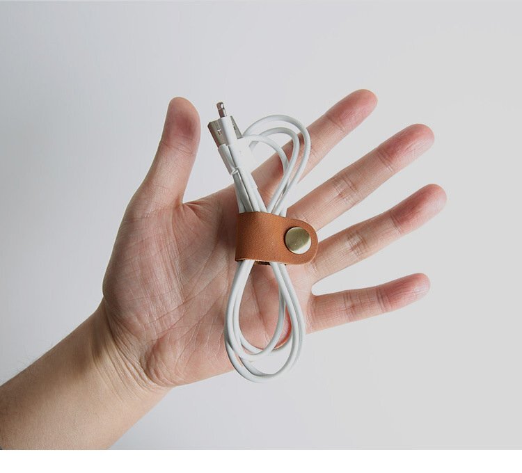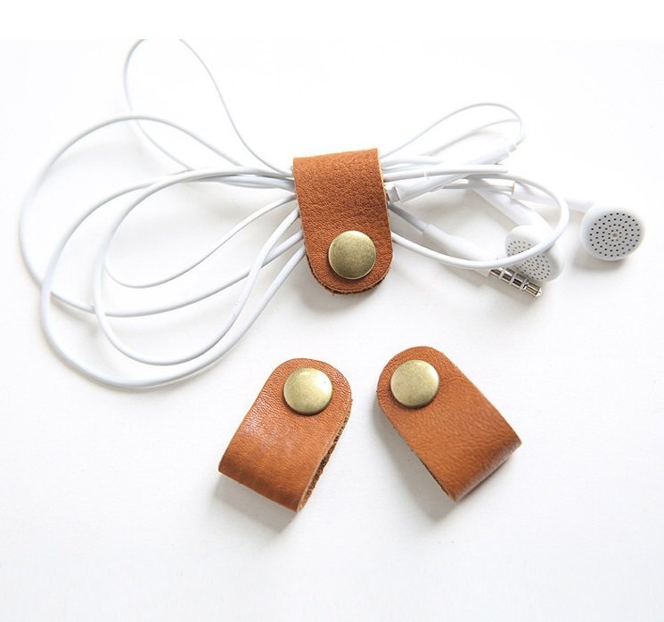 本革 コードクリップ ライトブラウン ケーブルクリップ ケーブルフォルダー イヤホンコード 巻取り 充電ケーブルホルダー
