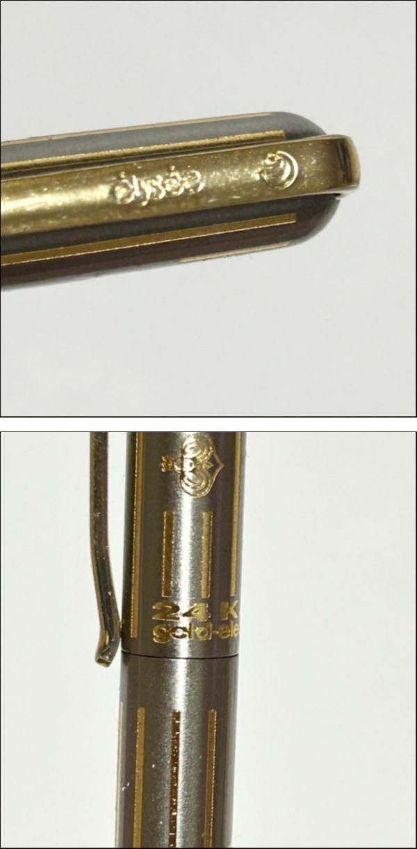 | ■商品名 elysee エリーゼ 万年筆 24karat 【状態】 現状品 動作確認は一切しておりません。 傷、汚れ、クスミ、色褪せ等御座います。 画像の物が全てです。 その他、状態については画像にてご判断をお願い致します。 | |||