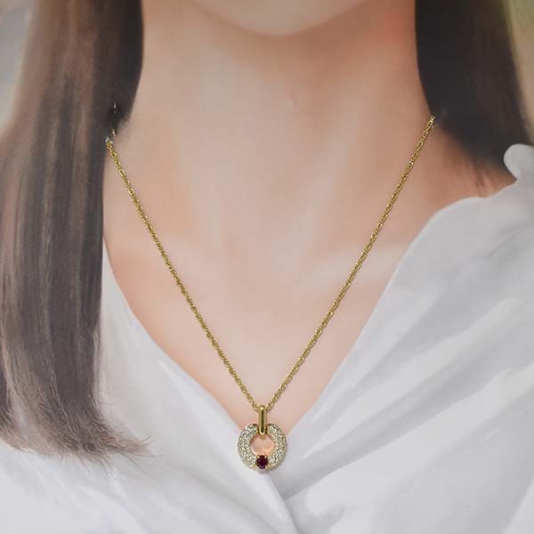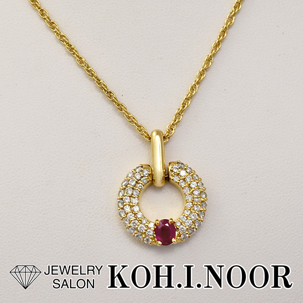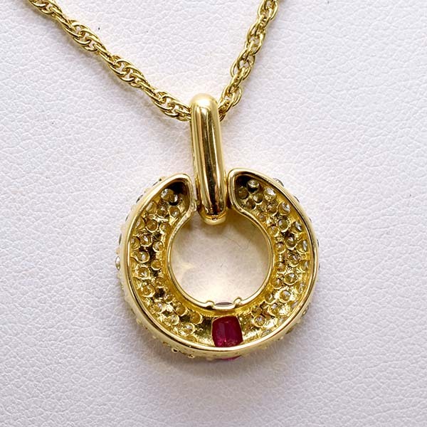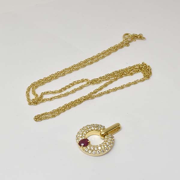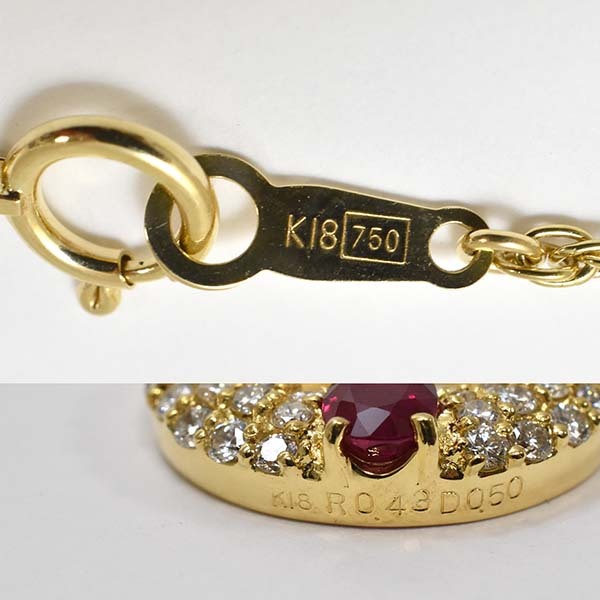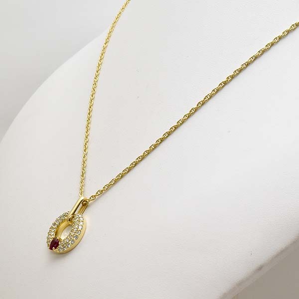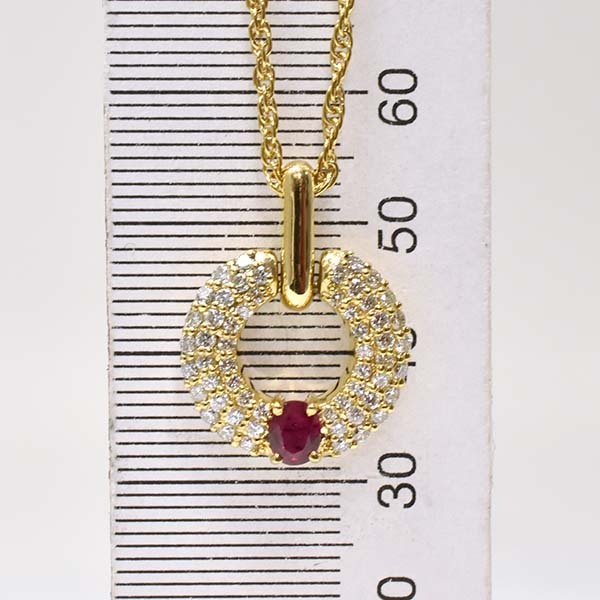 ルビーをメインにした18金イエローゴールド製のペンダントネックレス。| 商品詳細 | |||||||||||||||||||||||||||||||||||||